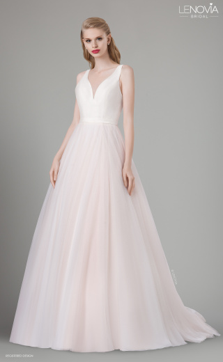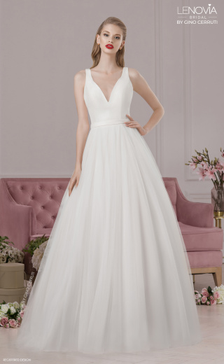 Klassisk og sofistikeret. Denne kjole er perfekt til den moderne brud, der ønsker et eventyrligt bryllup. Kjolen har en fyldig tylskørt, der giver dig en drømmende prinsesse-silhuet, mens livstykket er enkelt og slankt med en smuk detalje på ryggen, der giver en moderne vri. * Prinsessesilhuet * Accentueret talje * V-hals * Åben ryg med tynde stropper * Sweep train