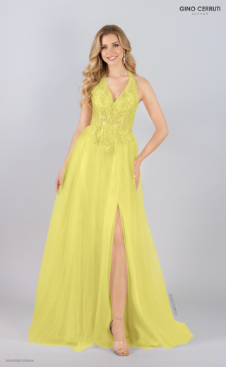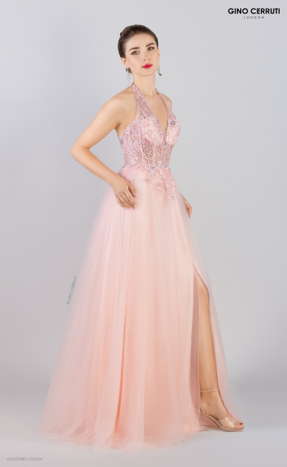 Der er ingen tvivl om, at du vil være aftenens skønhed i denne fantastiske kjole! Med en betagende fuld tulle nederdel og en halterneck, er den udsmykket med applikationer og perler for et ekstra strejf af glamour. Benudskæringen og det åbne rygdesign tilføjer en forførende kant, hvilket gør den til det perfekte valg til enhver formel lejlighed. * Halterneck * Korset-bodice * Applikation og perle-detajler * Benudskæring