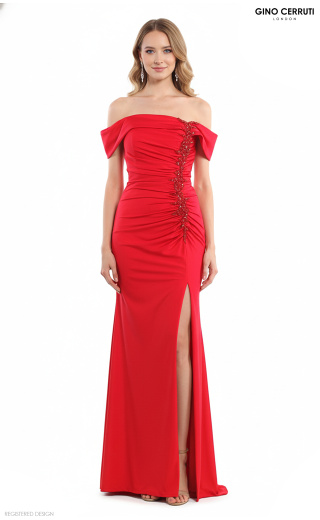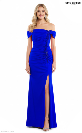 Denne fantastiske off-shoulder kjole har en udsøgt applikation på den ene side af bodicen, hvilket tilføjer et unikt præg til det elegante design. Kjolen inkluderer en stilfuld benkløft for et strejf af tiltrækning og flyder ud i et yndefuldt tog, hvilket gør den perfekt til skolebal eller enhver formel begivenhed. * Off-shoulder * Applikationsdetaljer * Benkløft * Tog * Snøringsryg