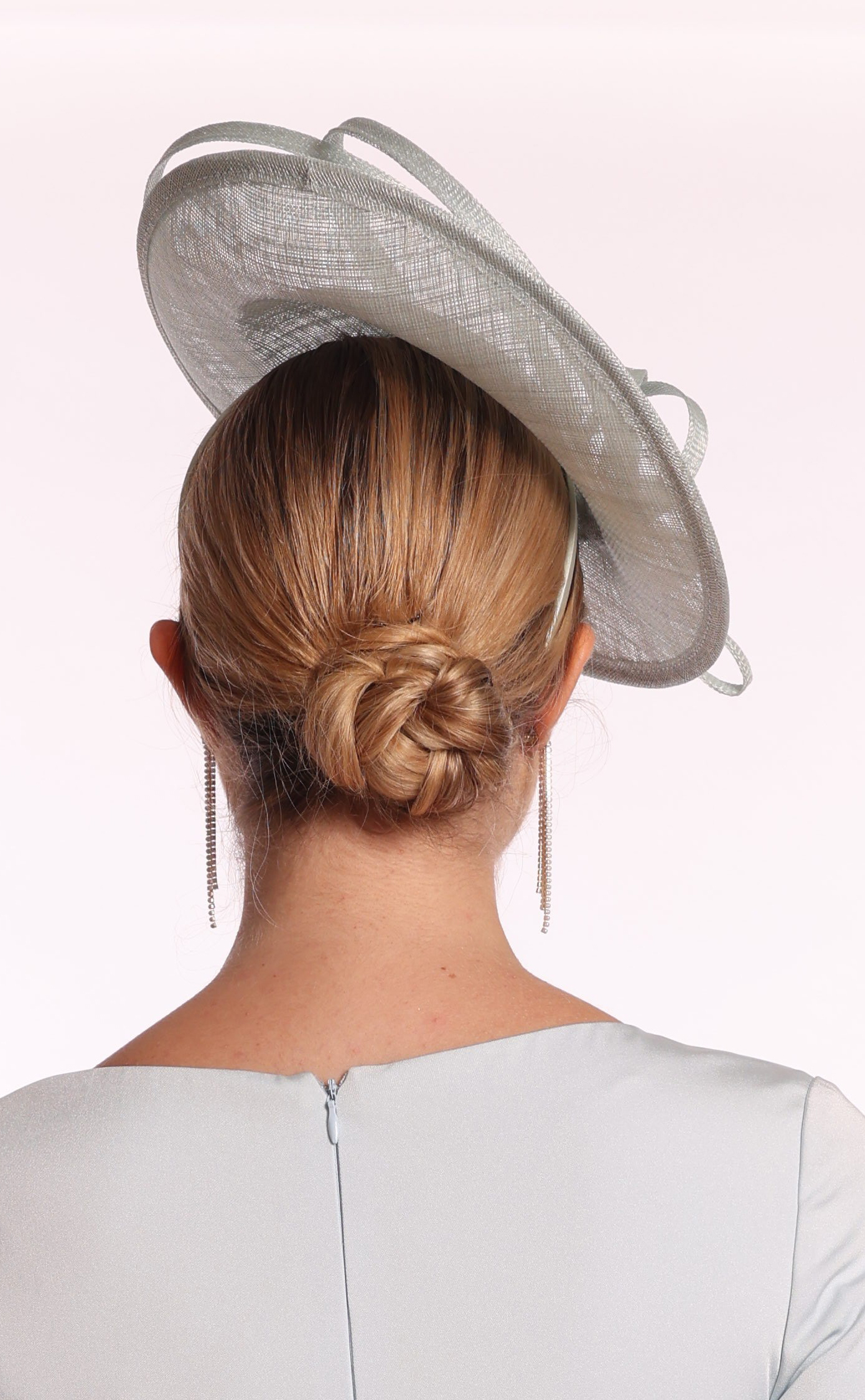 This elegant fascinator features soft tulle netting arranged in a sideward position for a stylish look. The curling detail adds a whimsical touch, while the upturned disc creates a dramatic silhouette. Finished with a discreet headband, this piece is perfect for adding sophistication to any special occasion. * Soft tulle netting * Sideward positioning * Curling detail * Upturned disc * Discreet headband