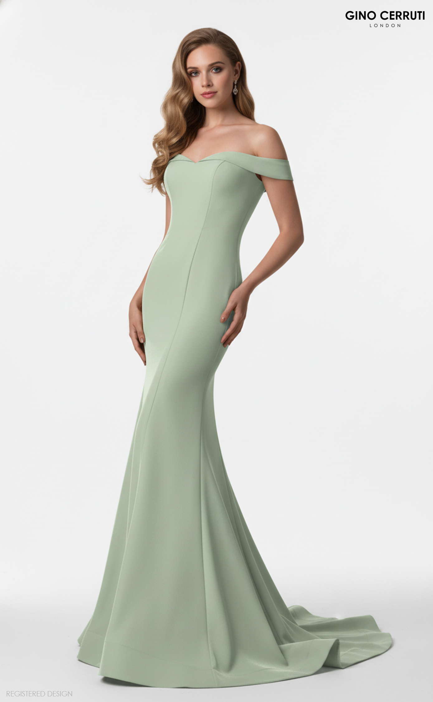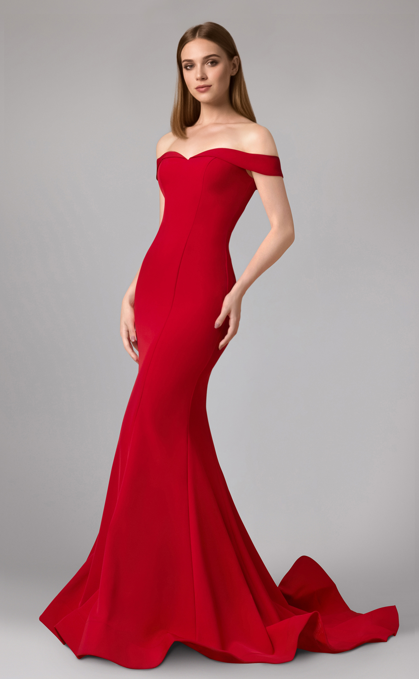 You won’t be able to resist this exquisite gown! Featuring a stunning flowing train that captivates from the first glance, this dress combines a smooth off-shoulder neckline with a close-fitting cut and a trendy fishtail skirt. Undoubtedly, this is the “must-have” dress for your wardrobe. * Off-shoulder * Form-fitting silhouette * Long train