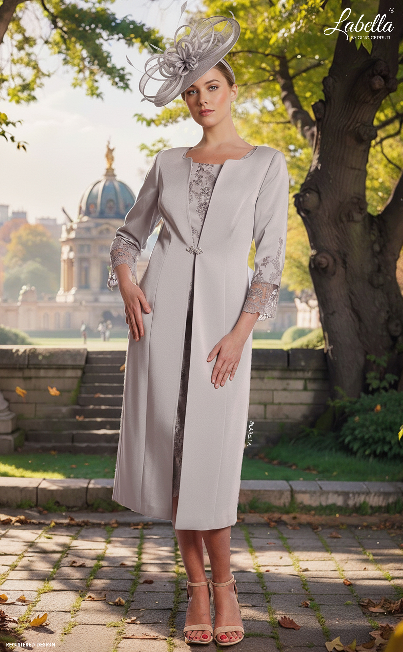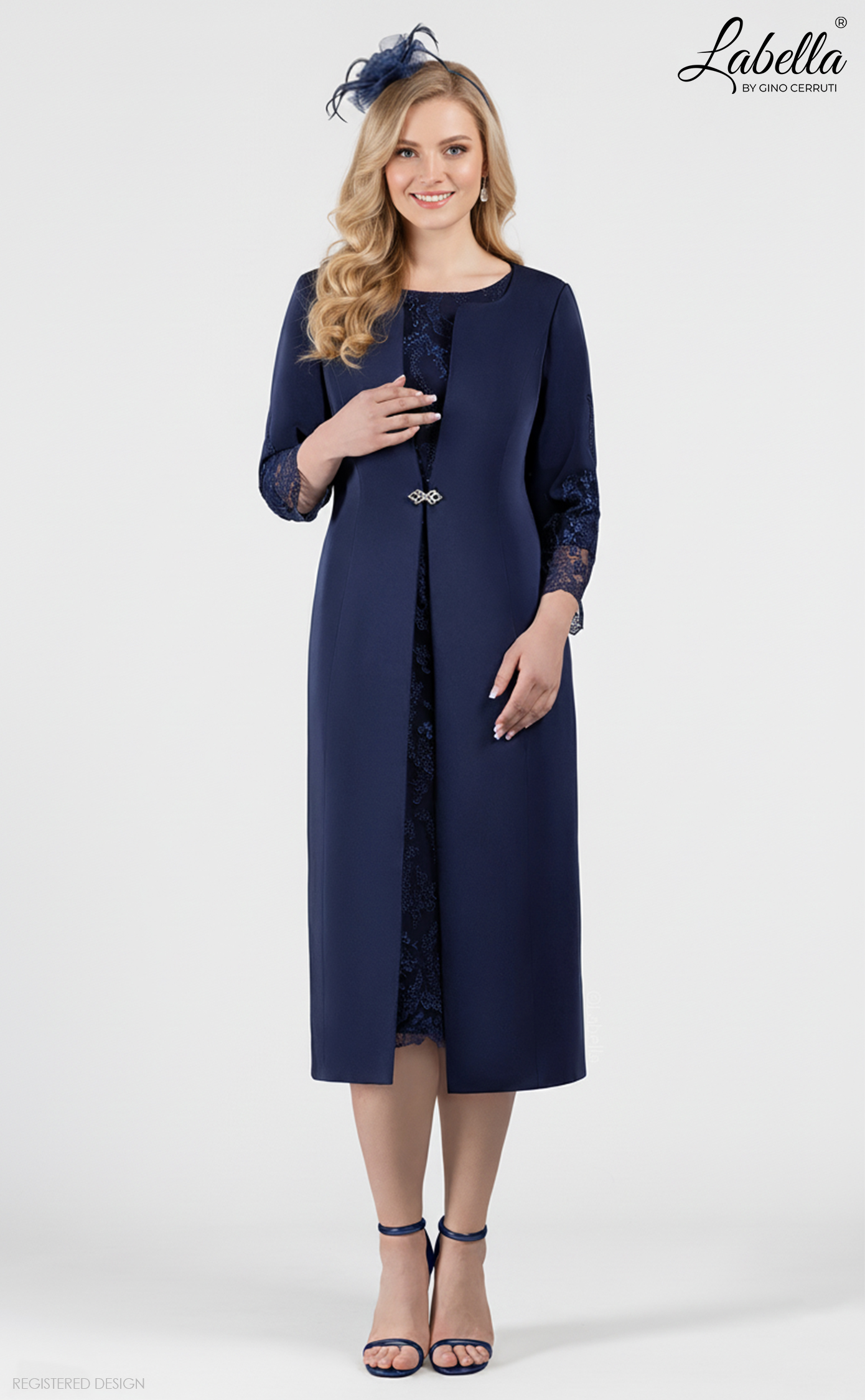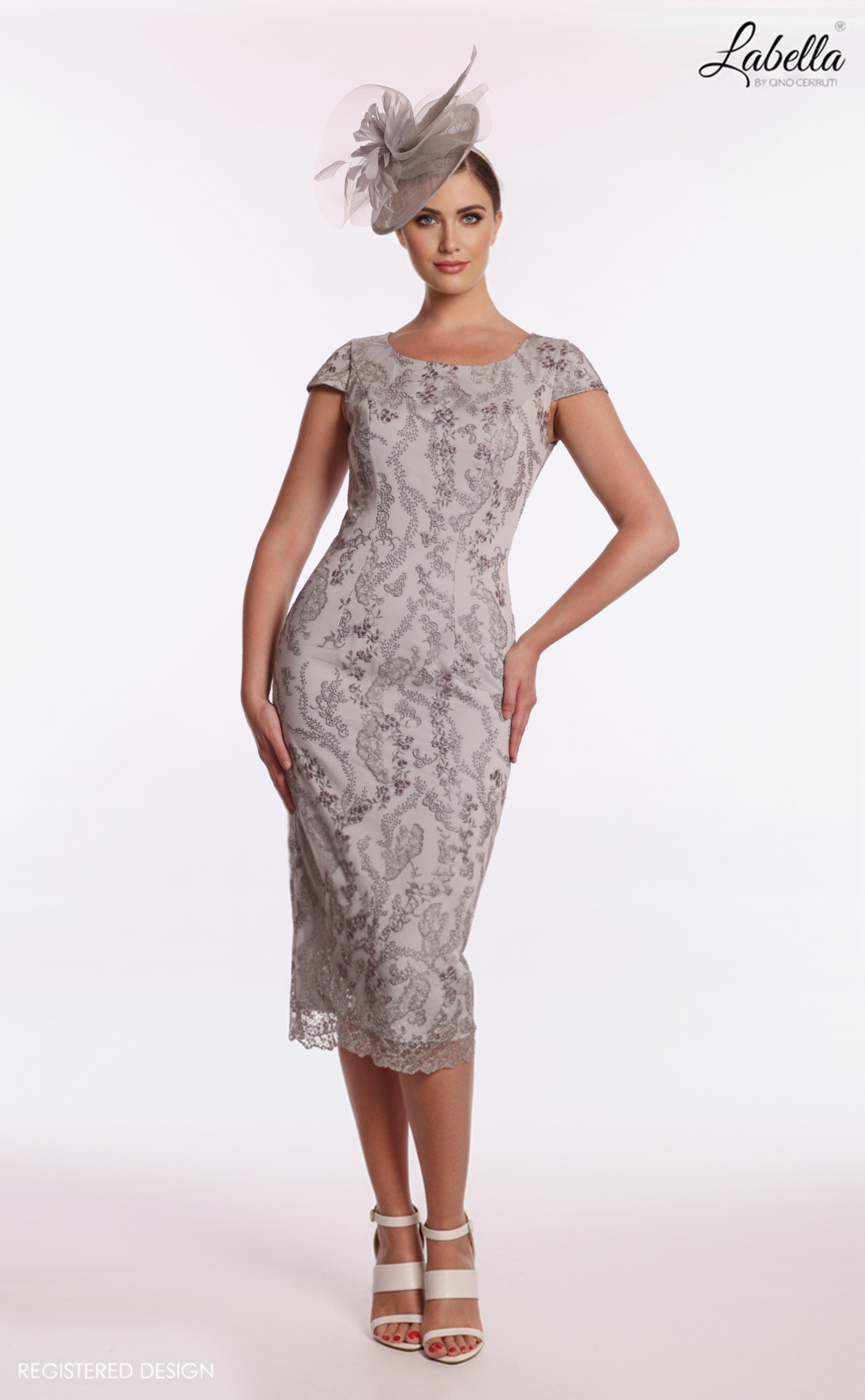 This beautifully embroidered lace dress features cap sleeves and is paired with a figure-hugging cinched waist jacket. The jacket has 3/4 length sleeves finished with a sheer embroidered lace hem and a stylish brooch fastening, making it wonderfully elegant for any occasion. * Round neck * Sheer lace * Cap sleeves * Matching jacket with small brooch fastening * Form-fitting silhouette