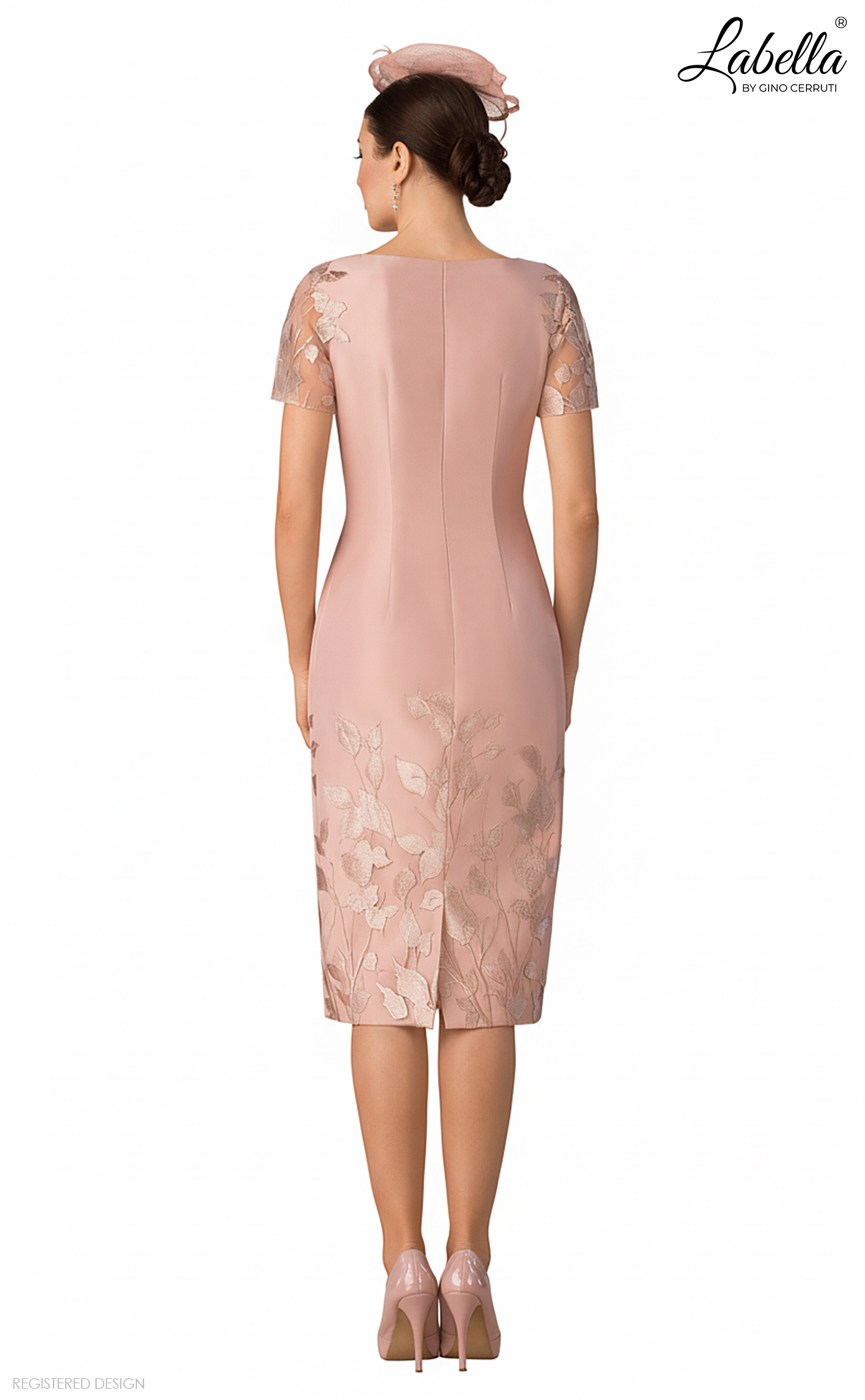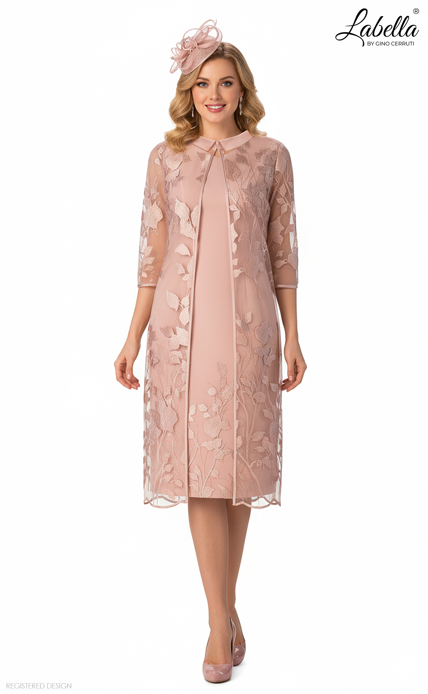 A beautifully simple dress featuring shear lace short sleeves, delicate embroidery throughout the lower skirt and a small slit in the back for comfort in movement. Paired with a delicate embroidered mesh jacket - with 3/4 length sleeves and satin collar will create a soft look for your special occasion. * Form-fitting silhouette * Shear lace short sleeves * Embroidered skirt * Knee-length * Shear lace long jacket with 3/4 length sleeves