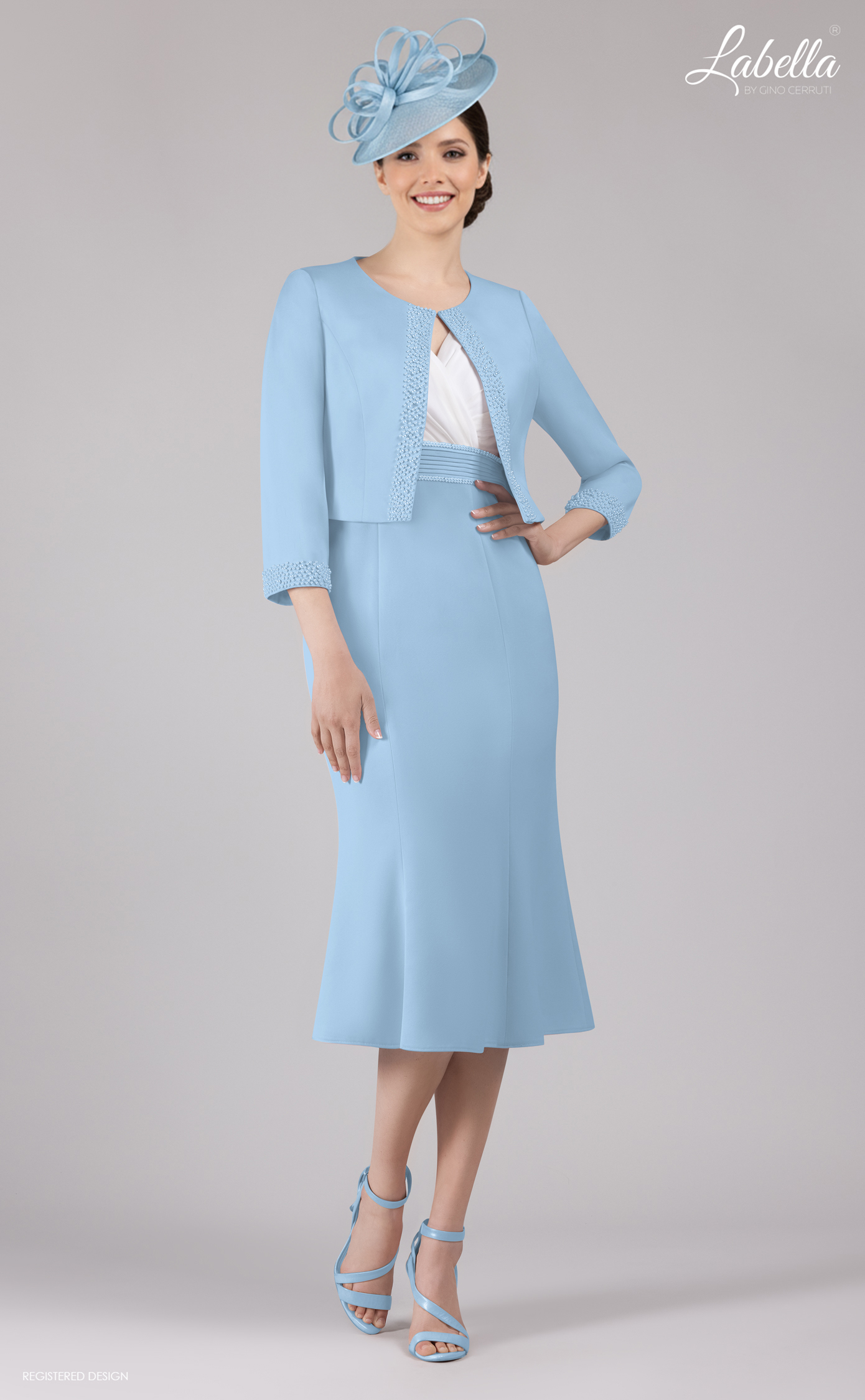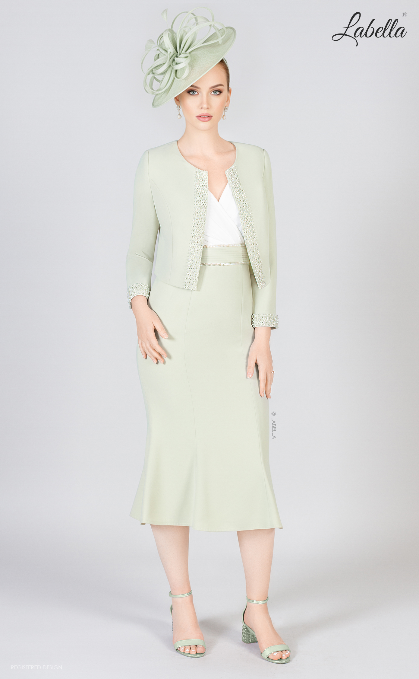 Oh so sophisticated! This outfit features a simply stunning fluted pencil skirt paired with a delicately pleated bodice and a wide waist belt, all finished with elegant pearl detailing. To complete the look, a cropped 3/4 length jacket with beaded detailing on the edges and a round neck adds a touch of refinement. * Pleated contrast bodice * Wide pleated waist belt * Fluted pencil skirt * Pearl bead detailing * Matching jacket