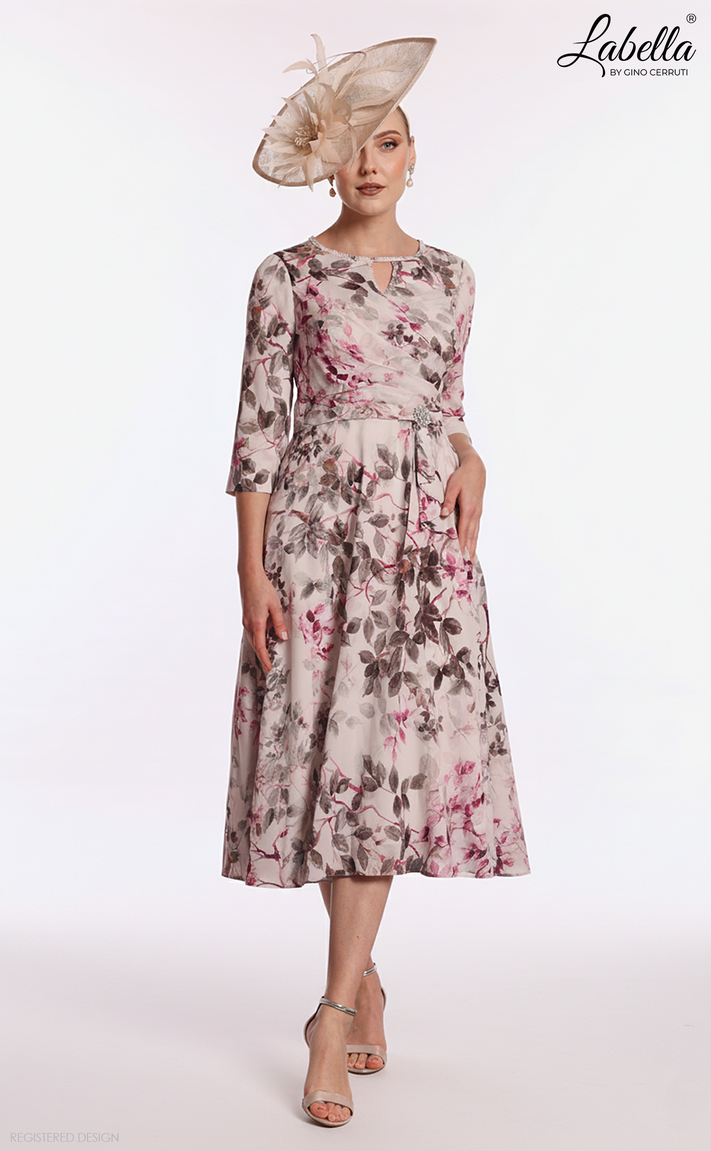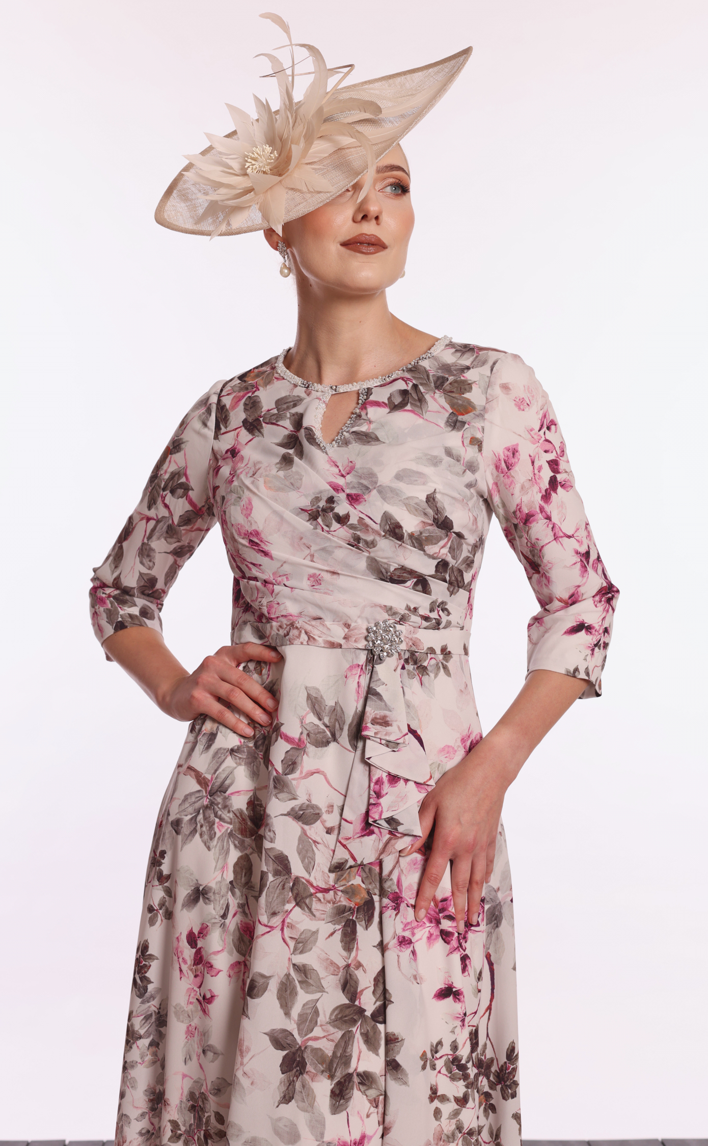 Something extra special for summer! This delicate chiffon print dress is ideal for spring and summer weddings, featuring a simple round neck and keyhole detail. A delicate waist belt and sparkling brooch add a special touch, while 3/4 length sleeves make it perfect for day-to-evening wear. * Printed chiffon * Round neck and keyhole detail * Pleated bodice * Waist belt with sparkling brooch * Pleated A-line skirt