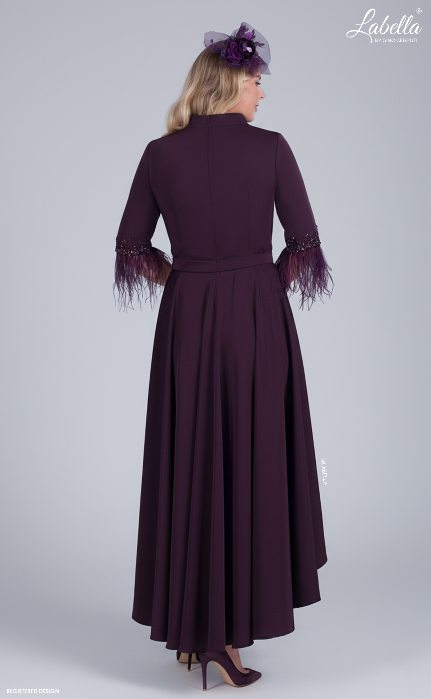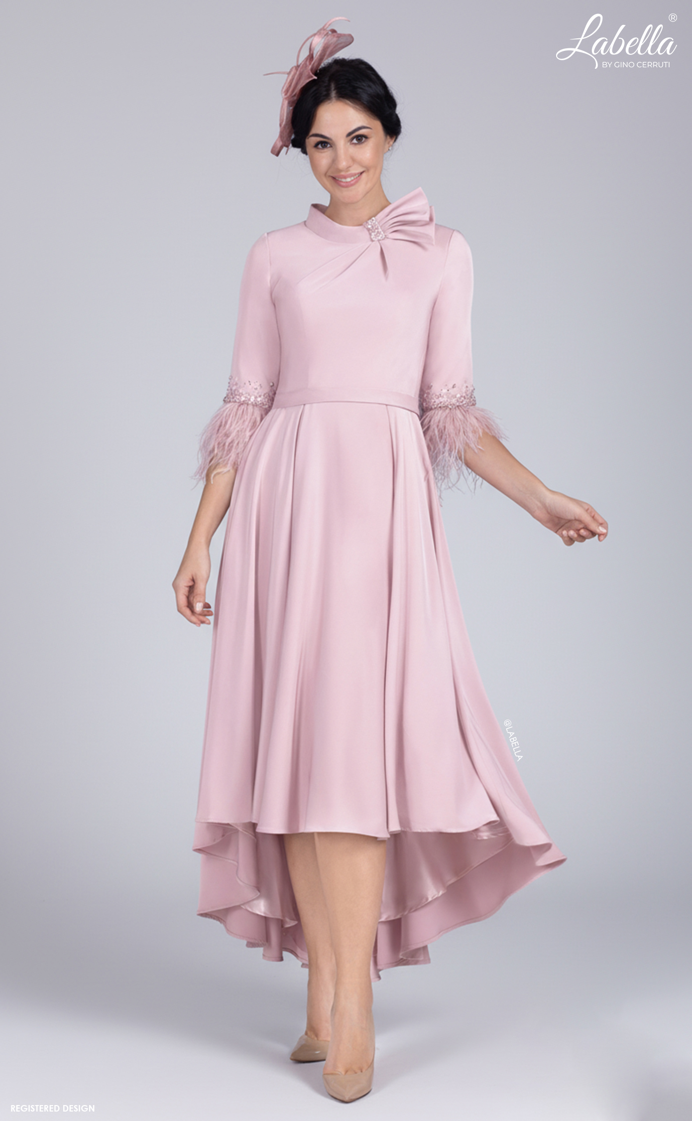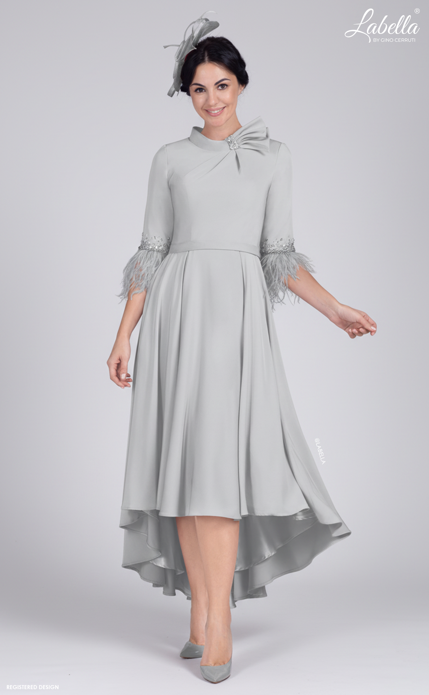 The perfect style for all year round! This stunning A-line dress has a dip hem skirt and high collar with eyecatching beading and pleats. The really special part is the statement elbow length sleeves with delicate beadings and ostrich feathers to ensure that no-one else's outfit can compare! * High collar * Ostrich feather hemmed sleeves * Dip hem A-line skirt
