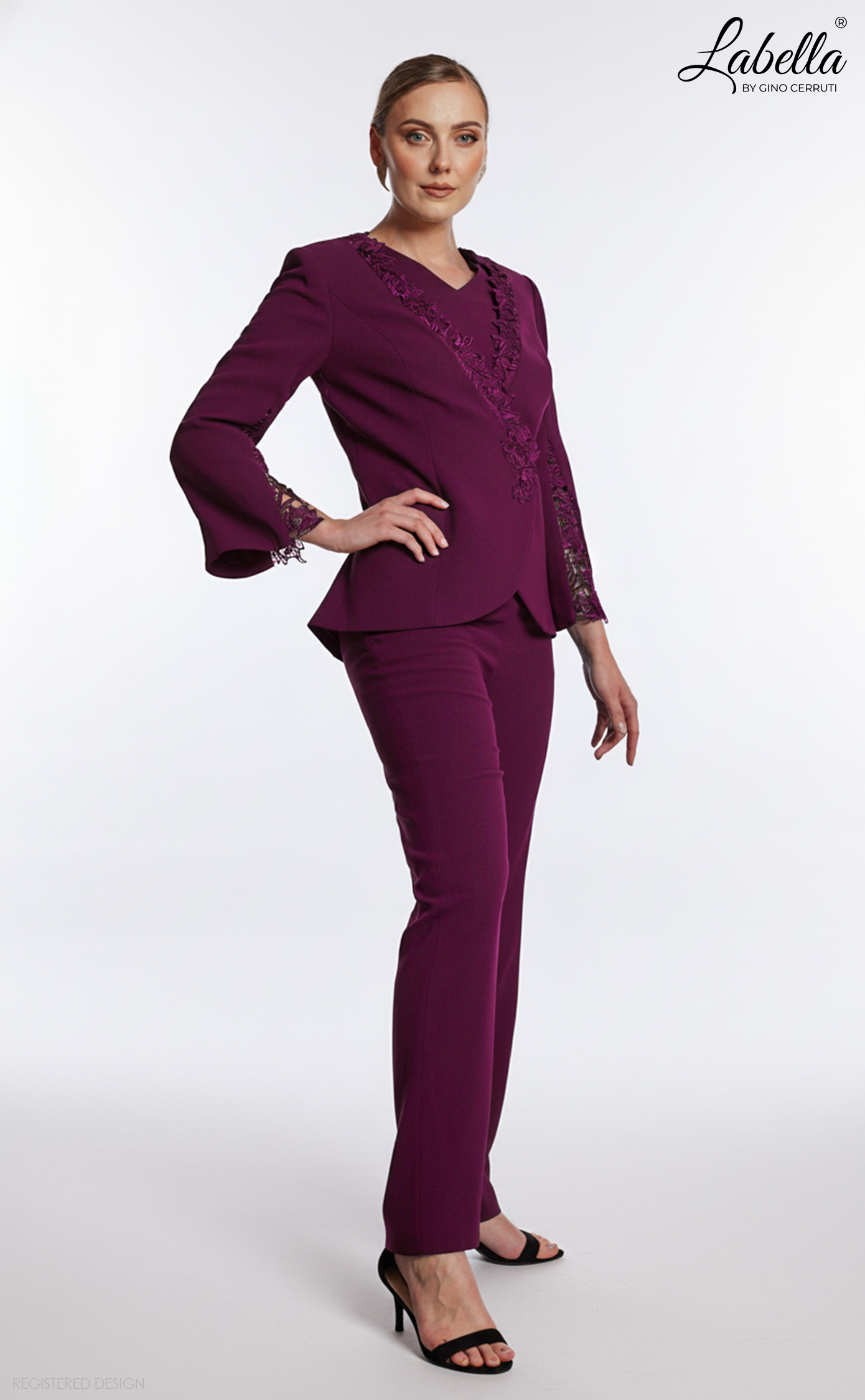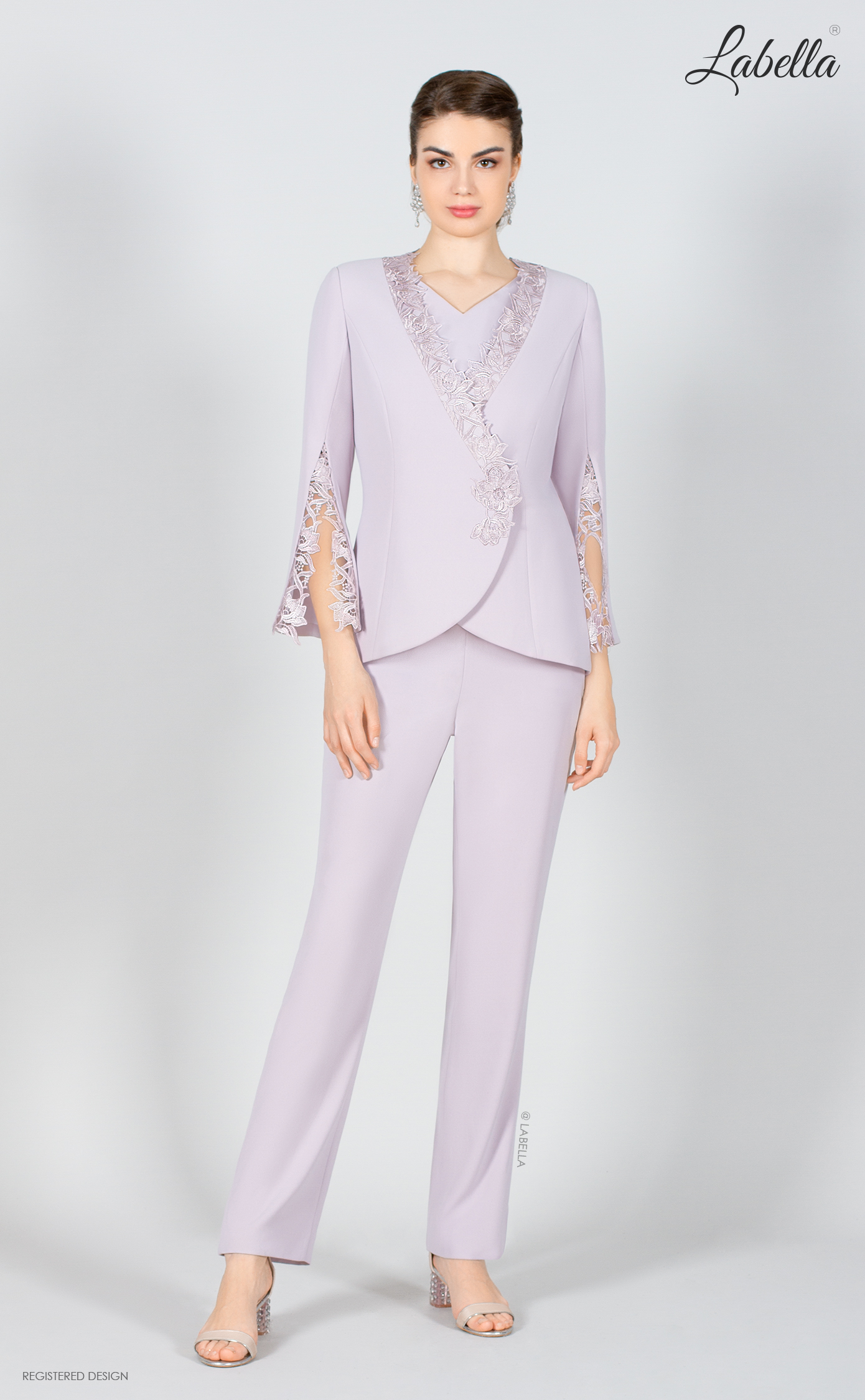 This elegant 3-piece suit is perfect for any occasion. At first glance, it features delicate tones, but the V-neck on the short-sleeve blouse adds a captivating touch. When paired with the jacket, it transforms into a beautiful look, adorned with lace. * 3-piece * V-neck * Short sleeve top * Matching jacket with lace