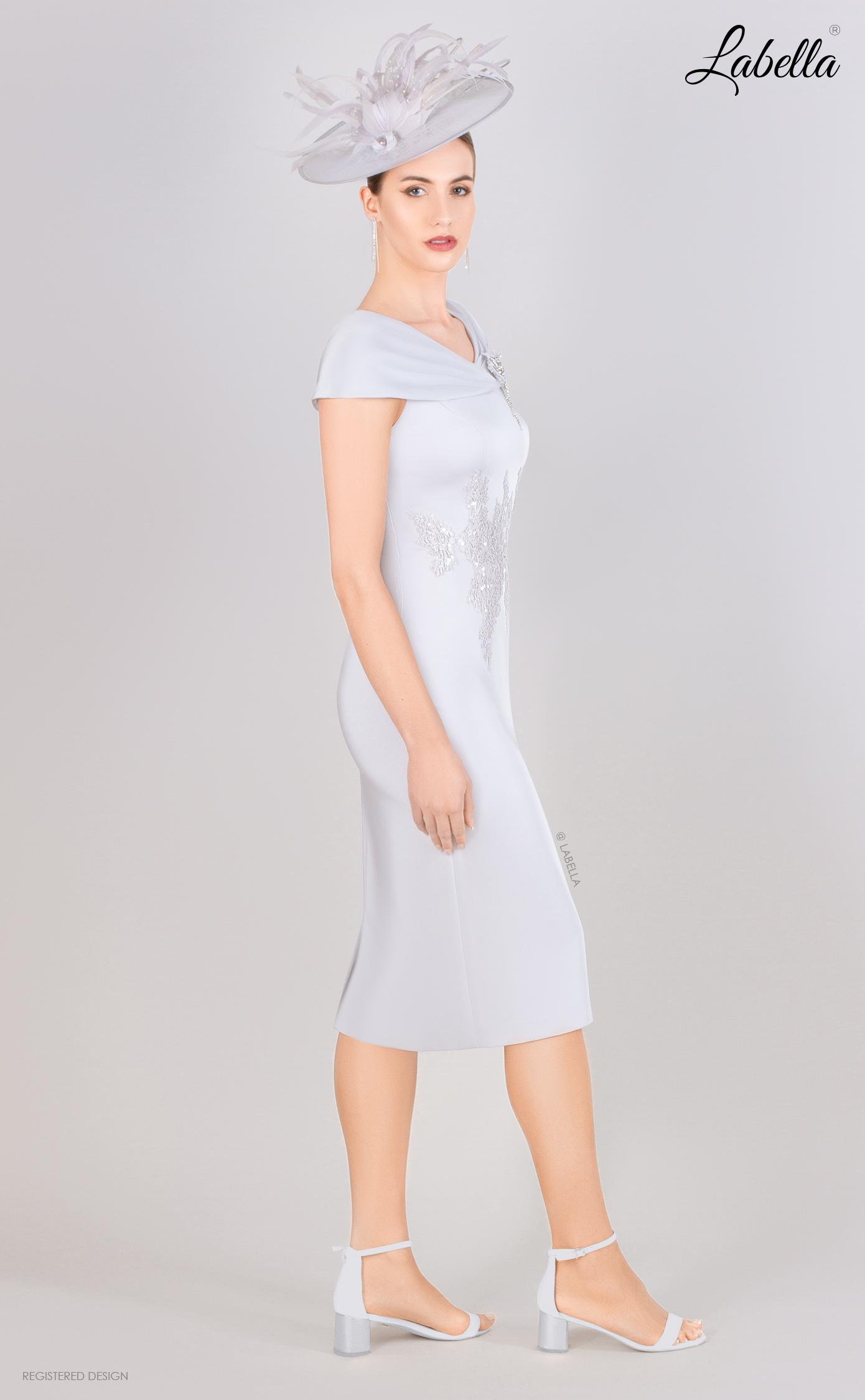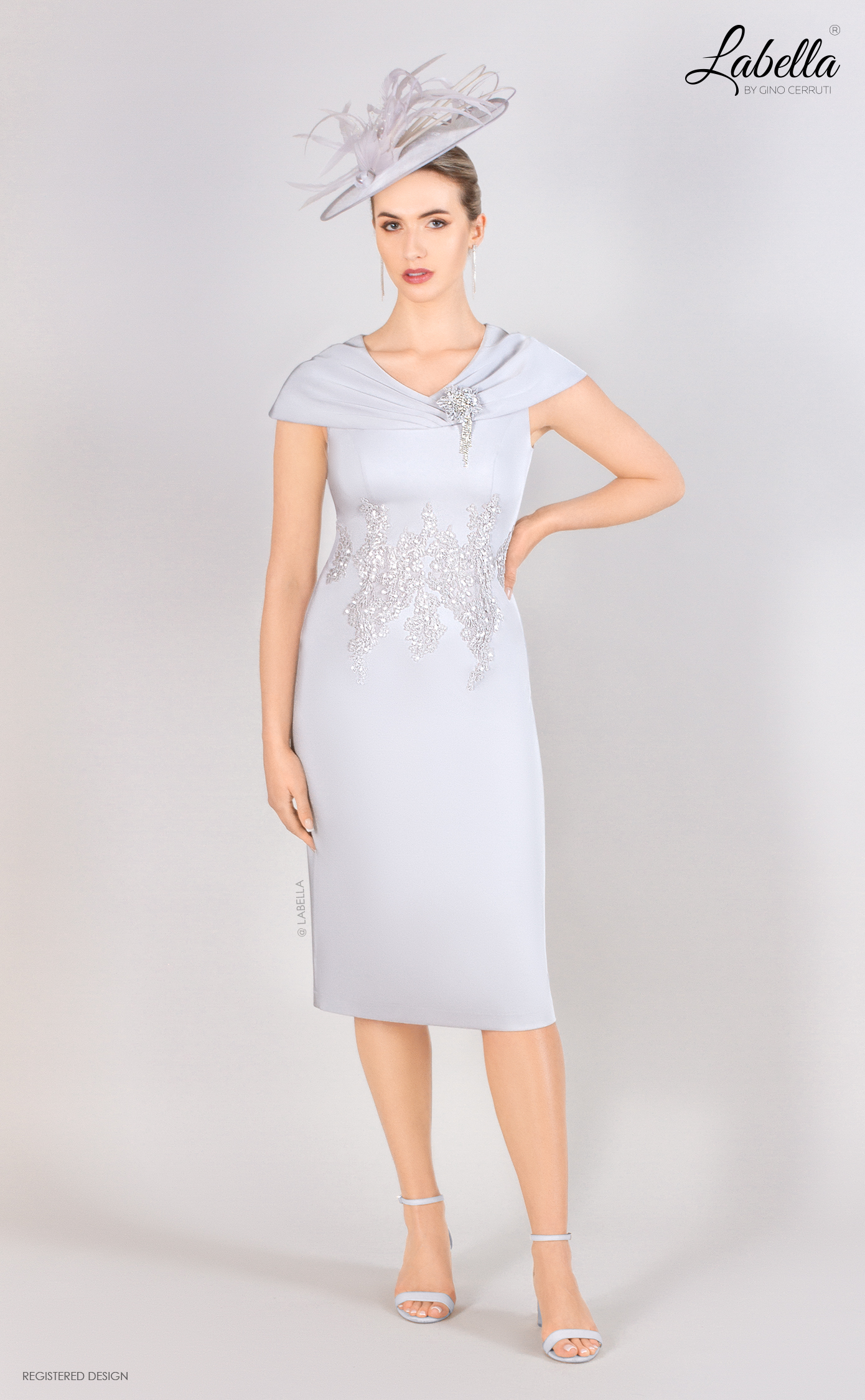 This stunning dress is glamorous and sophisticated, with unique shawl neckline and adorned with sparkling beads and sequins. This dress flatters the figure and would be the perfect outfit for a stylish mother of the bride or groom, or the chicest wedding guest! • Zip up back • Satin crepe fabric • Knee length • Fitted silhouette • sequin details