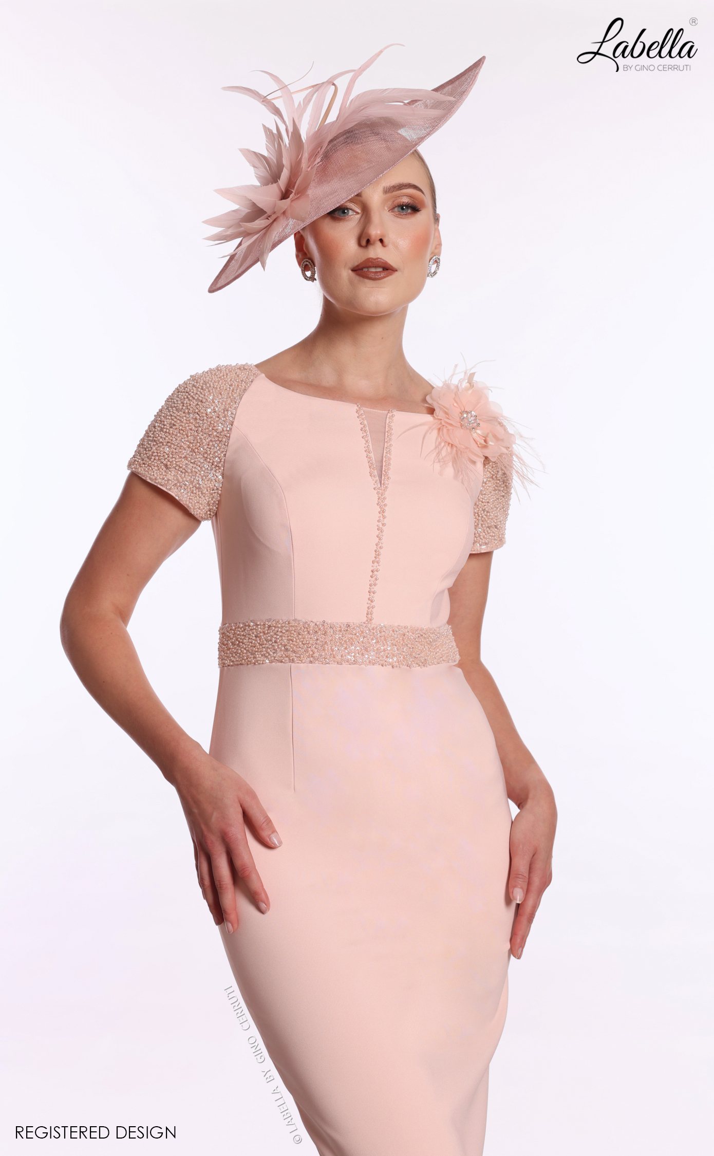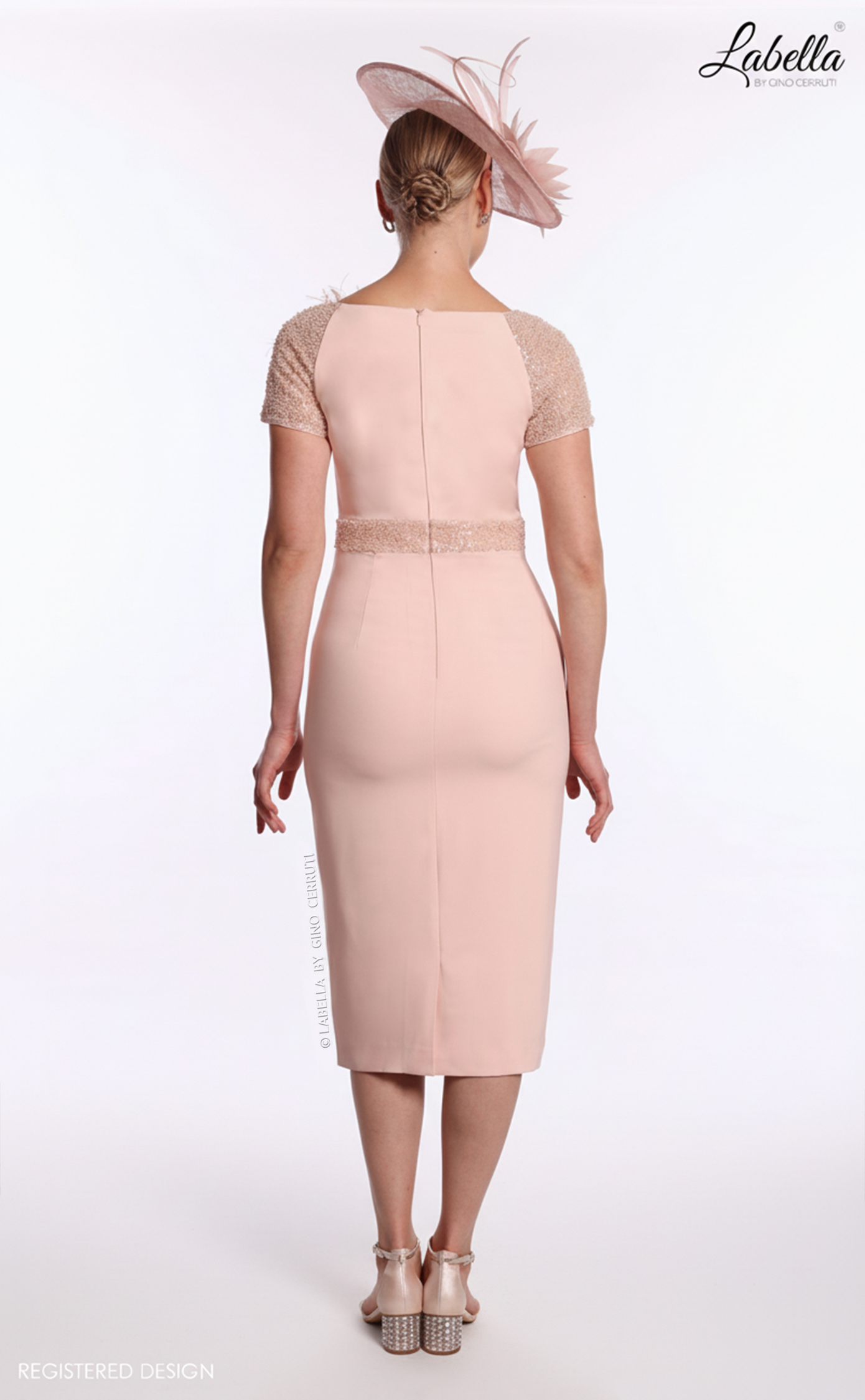 Elevate your style with our stunning knee-length fitted dress, featuring a chic V-shaped mesh cutout that adds a modern twist. The floral sequin shoulder brooch brings a touch of glamour, while the beaded short sleeves and beaded waist detail enhance your silhouette beautifully. Perfect for special occasions, this dress combines sophistication with unique design elements, ensuring you make a memorable entrance. * Round neck * Mesh cutout * Beaded short sleeves * Beaded waist details * Knee-length * Form-fitting silhouette