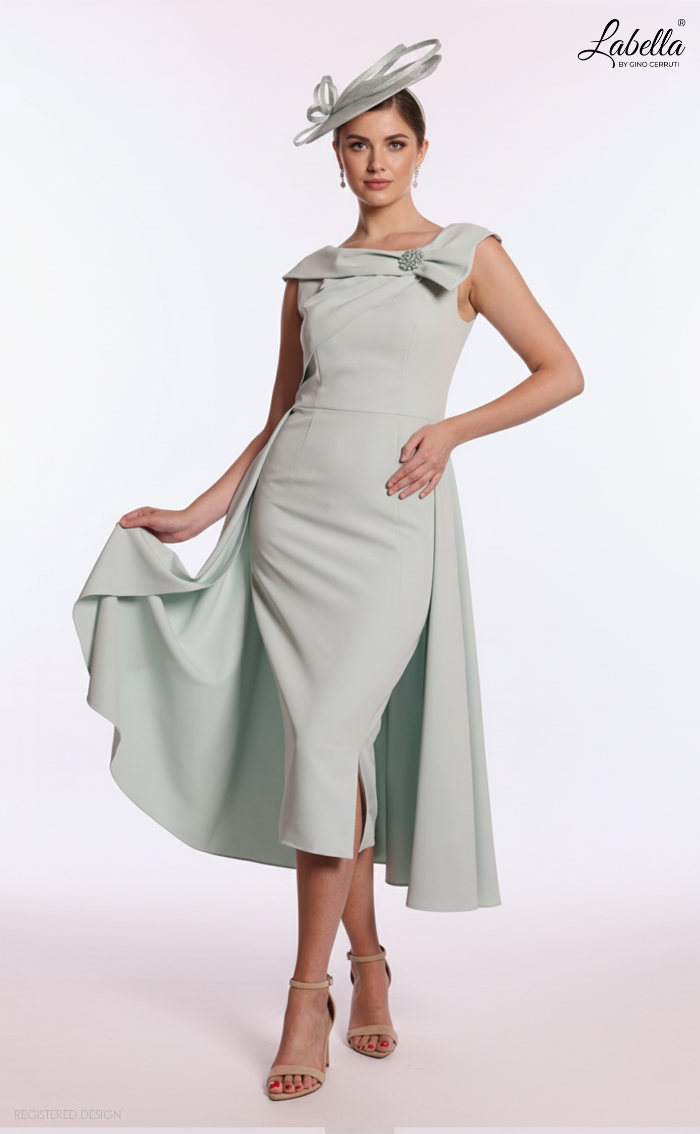 Make a lasting impression at any 2025 special occasion with our exquisite knee-length dress. Perfect for the discerning mother of the bride or any elegant event, this sophisticated piece combines timeless grace with contemporary flair. * Statement brooch * Leg split * Cape * Knee-length