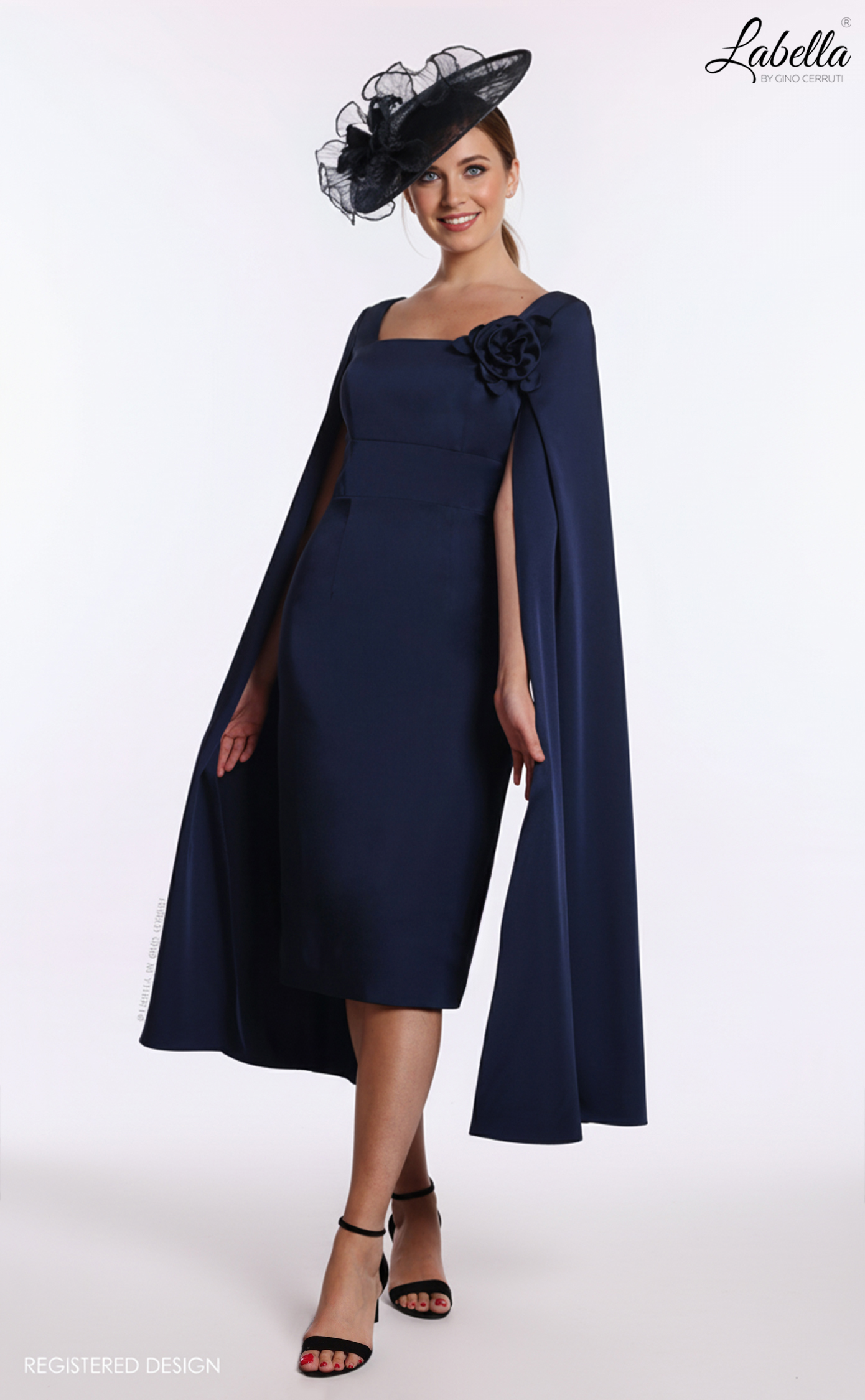 Stand out in our exquisite square neck knee-length fitted dress, designed to turn heads. This stunning dress features a beautiful flower detail on one shoulder, adding a touch of femininity and charm. The elegant silhouette is complemented by gorgeous long cape sleeves that flow gracefully, creating a bold, sophisticated look. * Square neck * Flower detail * Long cape sleeves * Knee-length * Form-fitting silhouette