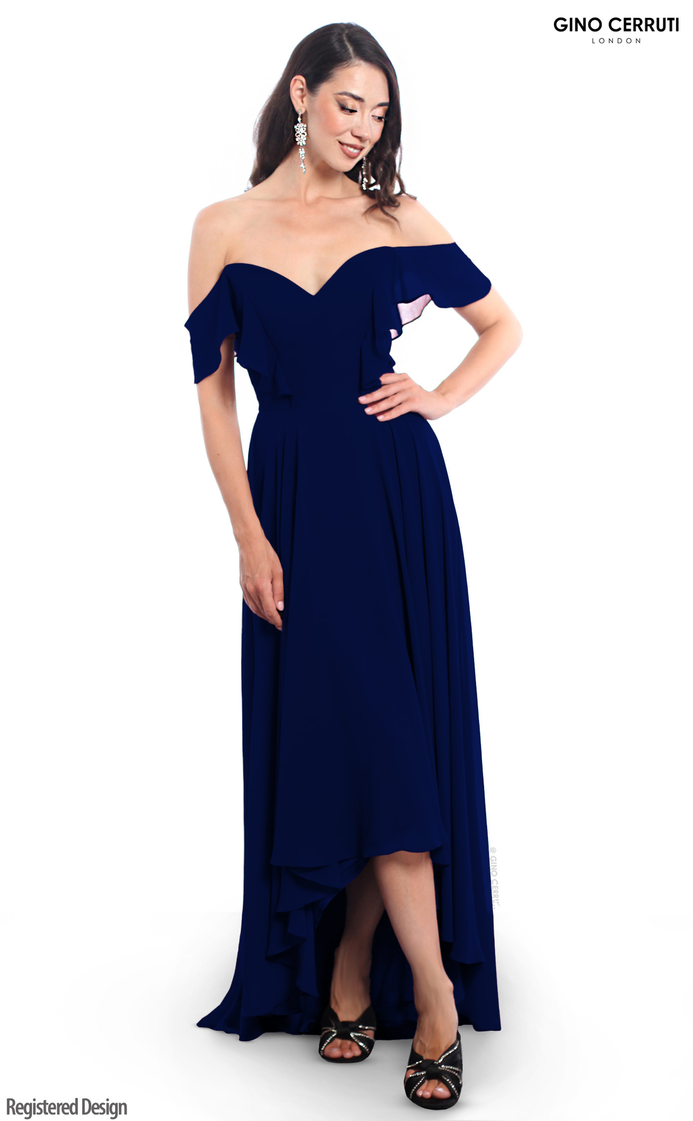 This stunning dress features a stylish strapless design with sheer ruffle sleeves and a beautifully detailed ruffle bodice. The uneven hem adds a unique flair, while the lace-up back ensures a perfect fit. Ideal for summer events or weddings, this gown combines elegance and modernity effortlessly! * Strapless * Sheer ruffle sleeves * Ruffle bodice detail * Uneven hem * Lace up back
