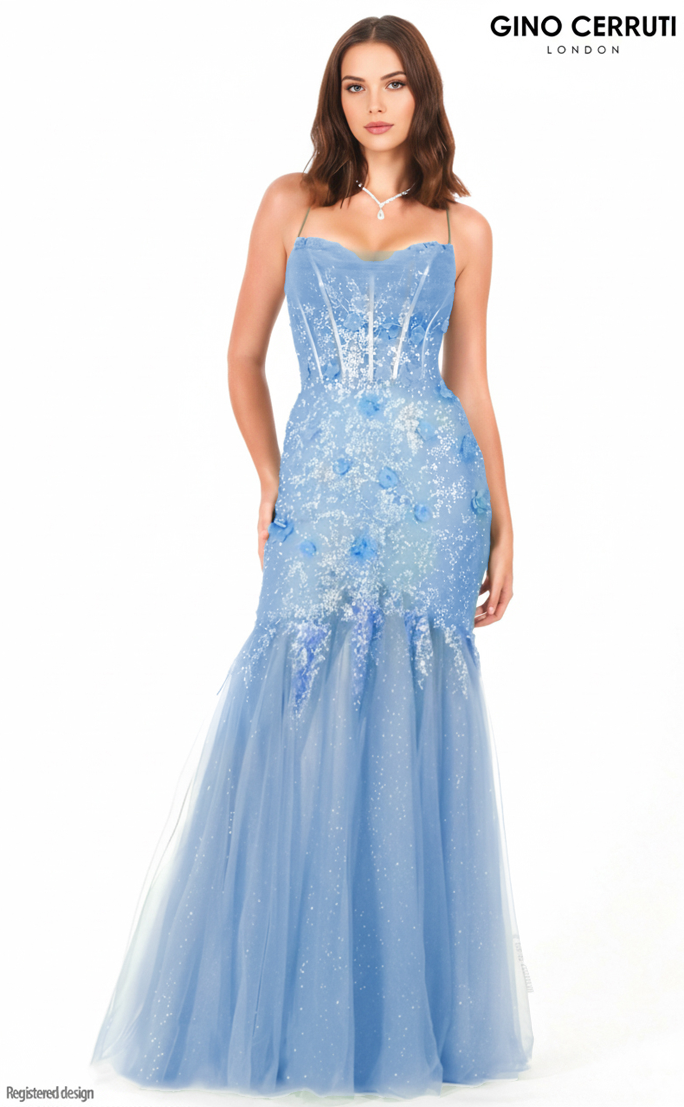 Embrace your inner elegance in this stunning gown featuring a floral bust detail adorned with exquisite 3D flowers. The flattering trumpet silhouette hugs your curves, while the flowing tulle skirt adds a romantic touch. With a chic lace-up back, this dress is perfect for making a statement at any special occasion! * Floral bust detail * 3D flowers * Trumpet silhouette * Tulle skirt * Lace up back Rush Cut Available until 07/03/2025