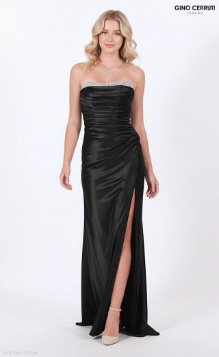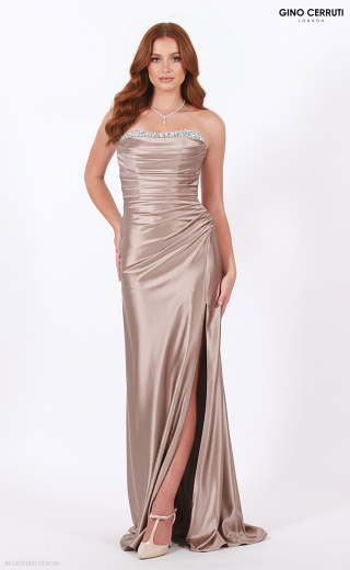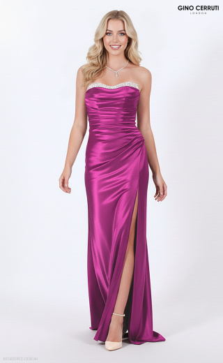 This enchanting strapless gown features a stunning beaded neckline and a beautifully pleated bodice, designed to make any prom girl feel like a queen. With a stylish leg slit that adds a touch of allure and a small train that flows gracefully behind, this dress is perfect for creating unforgettable memories on your special night. * Strapless, beaded neckline * Pleated bodice * Leg slit * Lace up back.