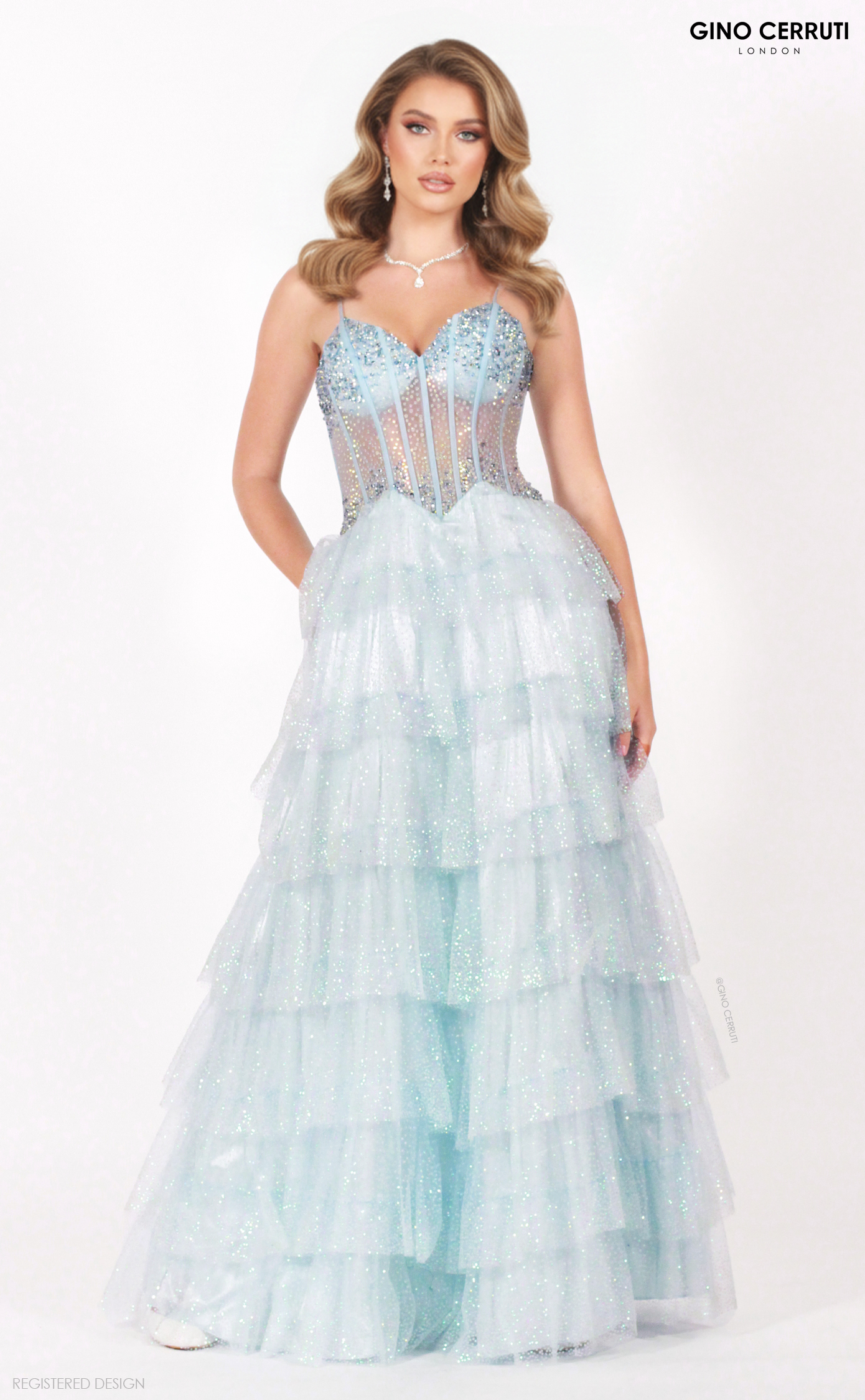 This stunning prom dress features a flattering V-neck and a beautifully beaded corset bodice that adds elegance and sparkle. The embellished waistline enhances the silhouette, while the layered sparkling skirt creates a dramatic effect. Finished with a lace-up back, this gown is perfect for making a statement at any special event! * V neck * Beaded corsert bodice * Embellished waistline * Layered sparkling skirt * Lace up back
