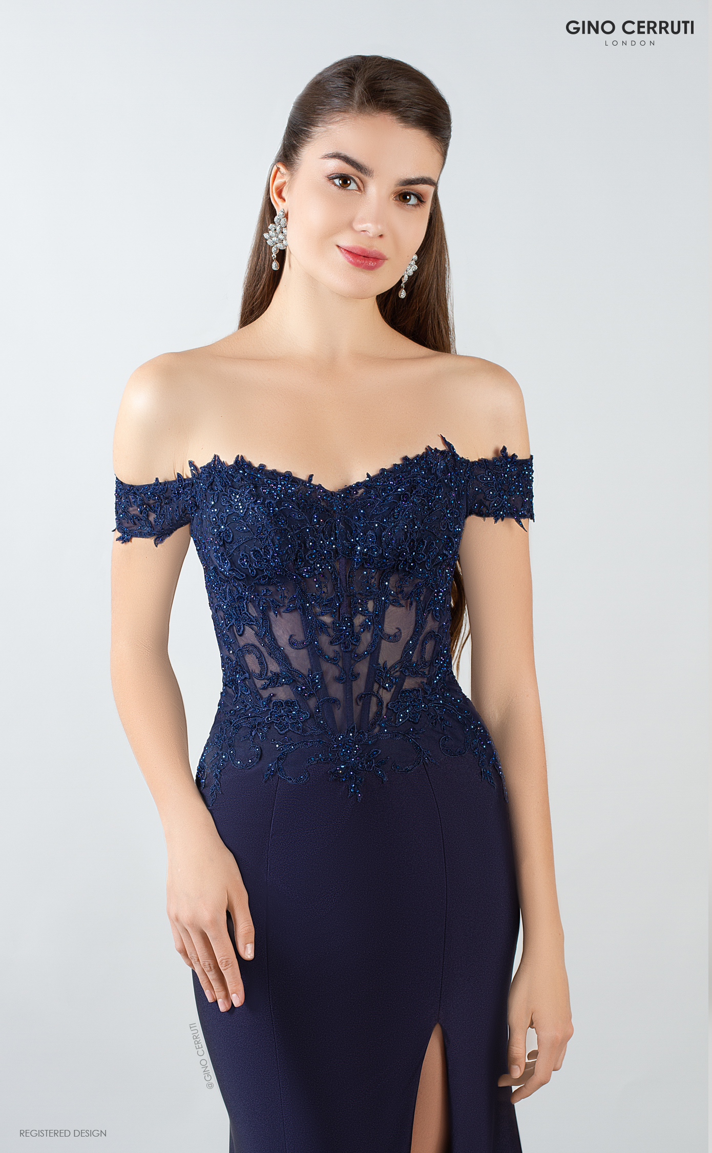 Corsets look stunning from every angle, and this outfit is no exception! Decorated with shiny lace and beads, the dropped sleeves beautifully accentuate the collarbone. The form-fitting silhouette flows into a floor-length skirt with a leg slit, making your look even more exciting. * Lace corset top * Off-shoulder lace sleeves * Floor-length * Leg split