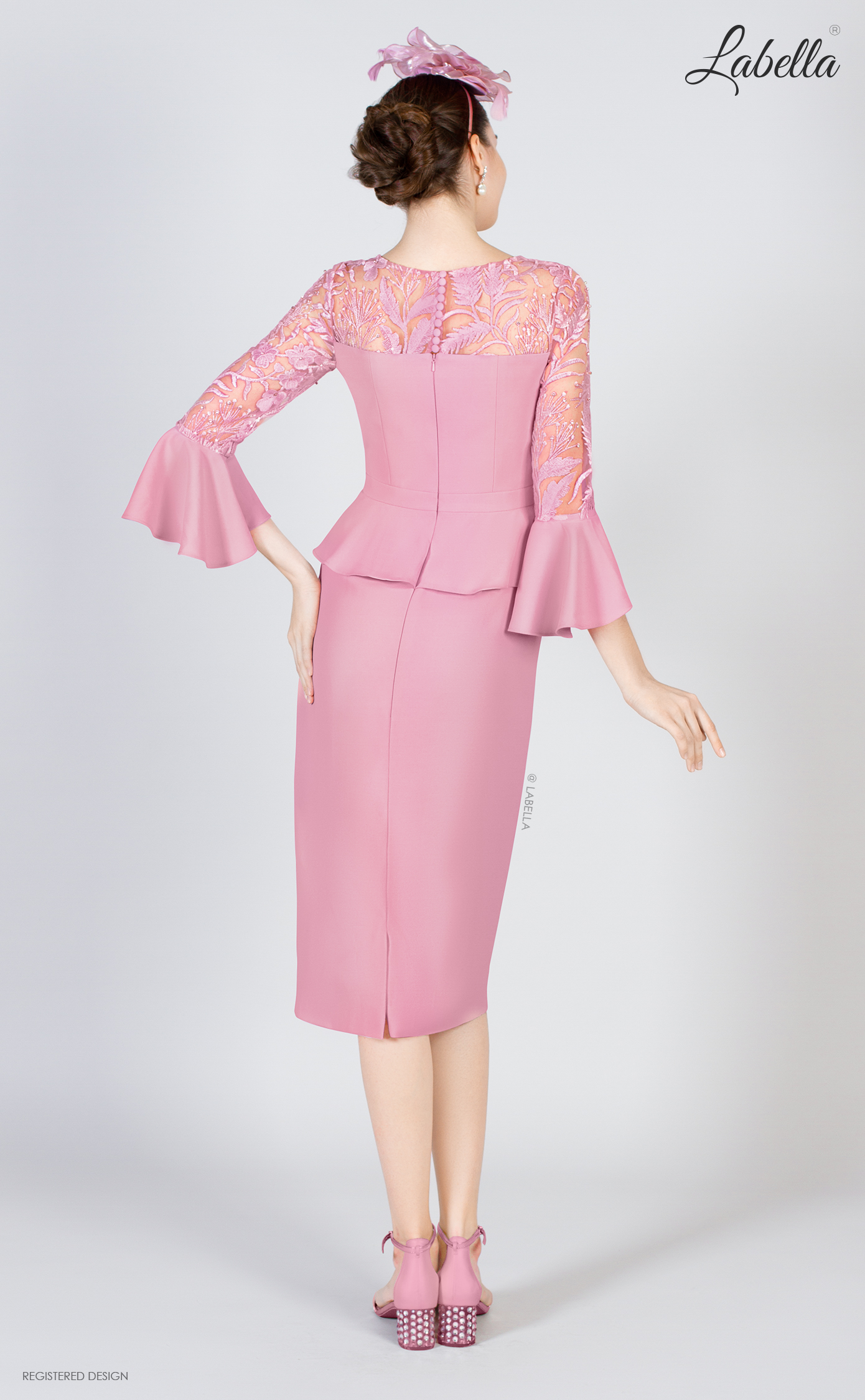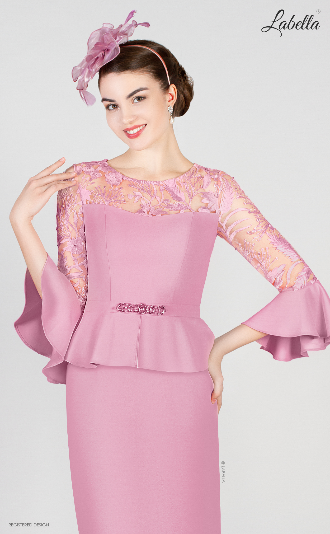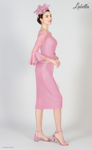 Charming dress for any special occasion. The illusory lace top and sleeves that will captivate the attention of everyone. With matching ruffles on the sleeves and waist add harmony to the look. The detail of sparkling stones at the waist also stands out very brightly. * 3/4 ruffled sleeve * Illusory lace * Mid length * Decorative belt