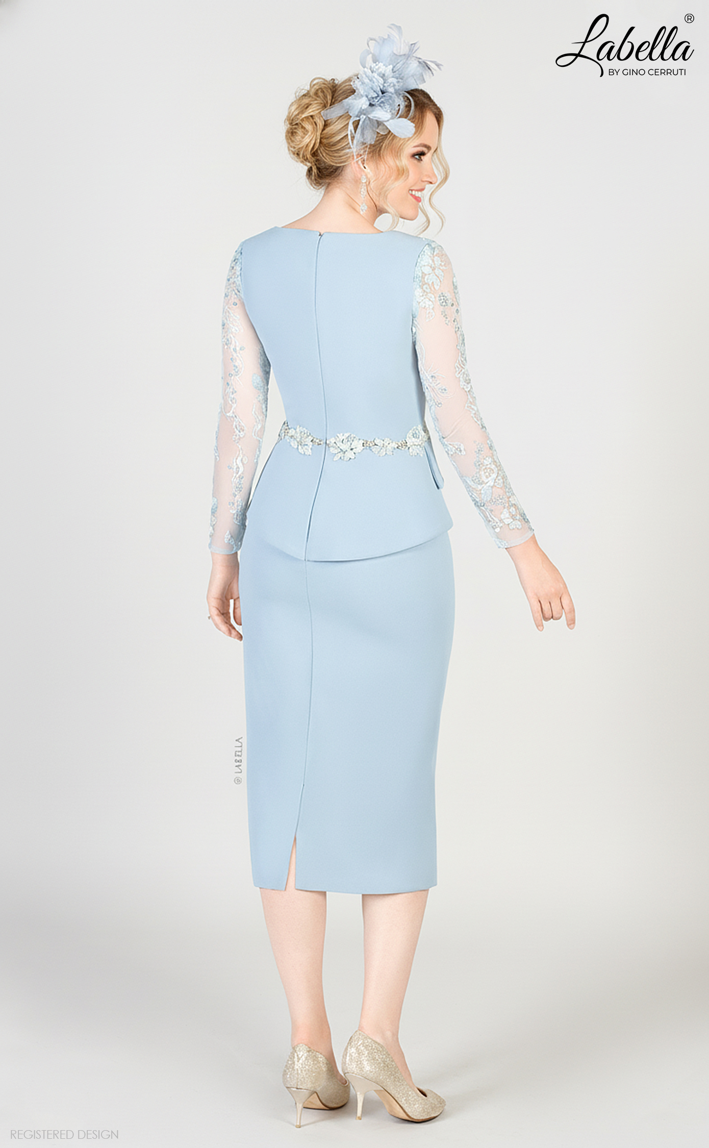 A pencil skirt will never go out of style—it's the epitome of femininity. This dress elevates the classic silhouette with illusion lace sleeves and a statement bodice featuring beautiful floral lace detail on the waist, creating a modern and elegant look. * V-neck * Long lace sleeves * Floral lace waist details * Form-fitting silhouette