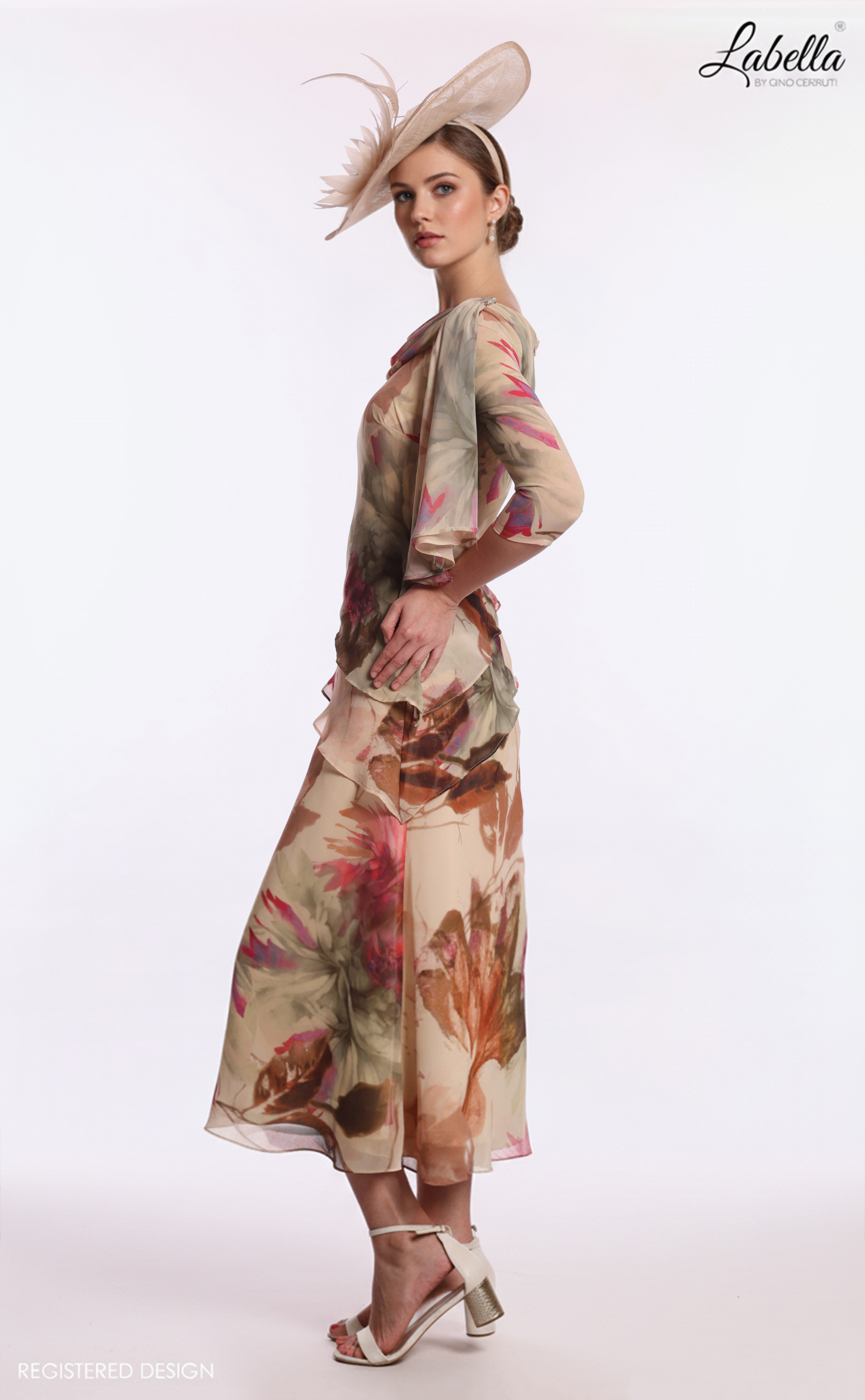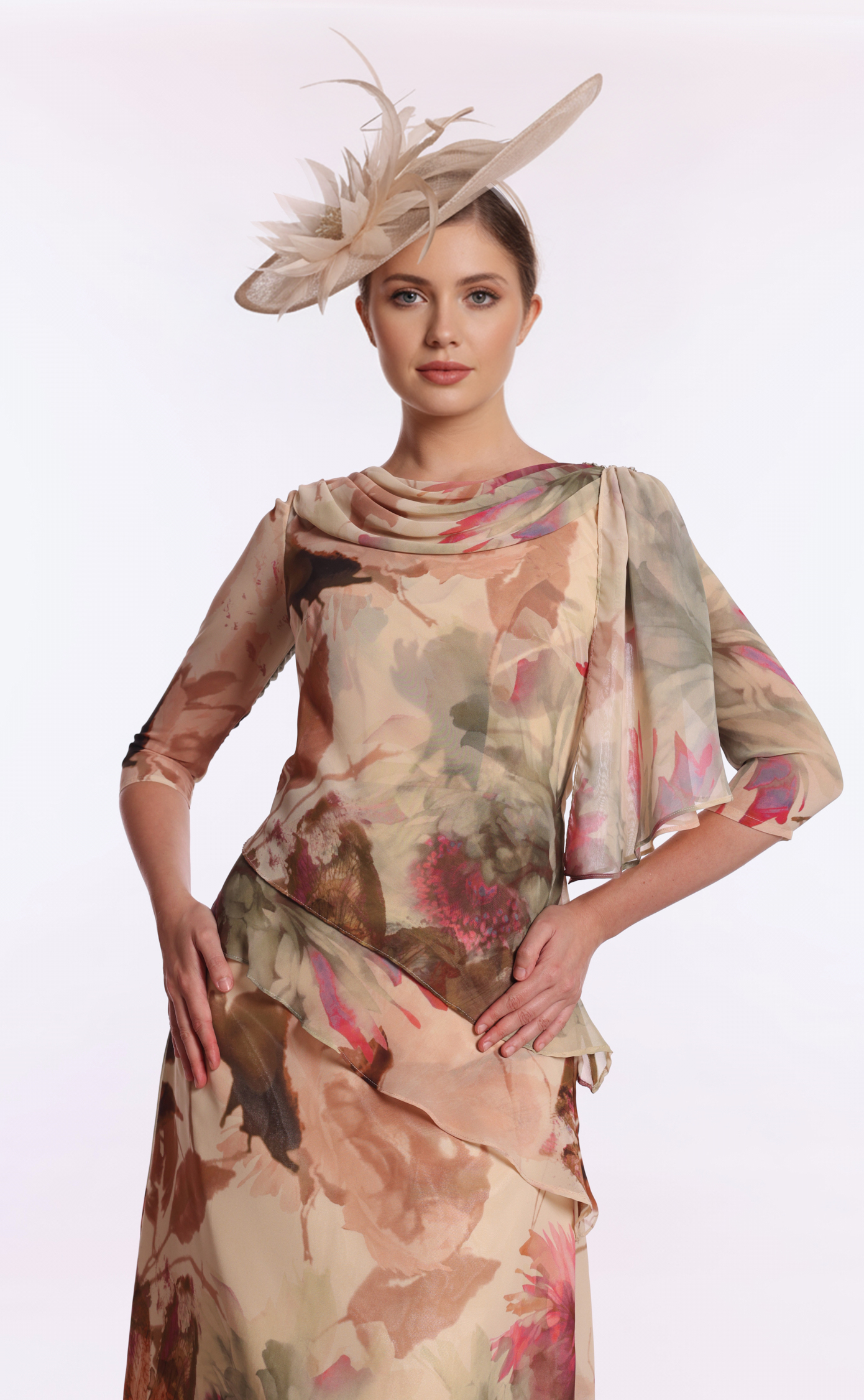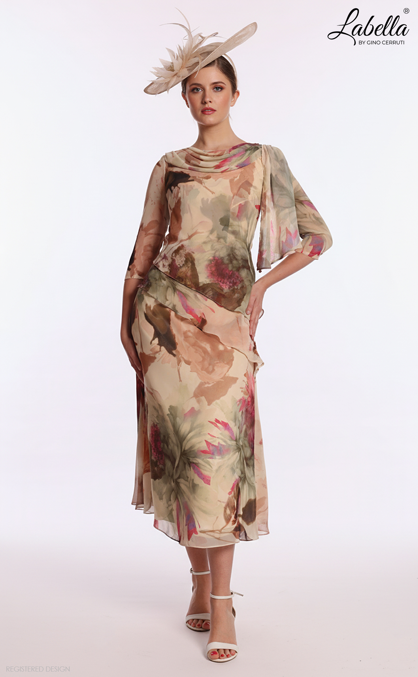 Romance awaits with this stunning dress! The floral printed chiffon highlights a beautiful cowl neckline with statement shoulders. Elegant 3/4 sleeves and a flowing skirt work together to emphasize your beauty effortlessly. * 3/4 sleeves * Floral printed chiffon * Light flowing skirt * Tea-length