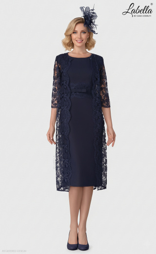Szukasz klasycznej sukienki? Nie szukaj dalej! Ta sukienka ma talię wciągniętą, zdobioną koronką i wstążką, tworzącą korzystną sylwetkę. Skromny krój uzupełnia lekka koronkowa kurtka, a piękny materiał krepy elegancko kontrastuje z koronką, co skutkuje wspaniale eleganckim wyglądem. * Wstążka w kokardę w talii * Długość do kolan * Dopasowana sylwetka * Pasująca koronkowa kurtka