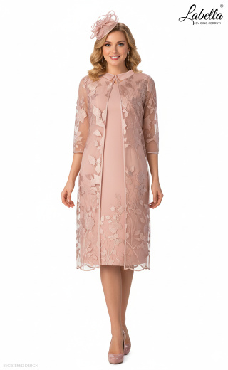 Pięknie prosta sukienka z przezroczystymi koronkowymi krótkimi rękawami, delikatnym haftem na dolnej części spódnicy oraz małym rozcięciem z tyłu dla komfortu ruchu. W połączeniu z delikatną koronkową kurtką z haftem - z rękawami 3/4 oraz satynowym kołnierzykiem, stworzy subtelny wygląd na Twoją wyjątkową okazję. * Dopasowana sylwetka * Przezroczyste koronkowe krótkie rękawy * Haftowana spódnica * Długość do kolan * Przezroczysta koronkowa długa kurtka z rękawami 3/4