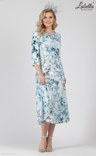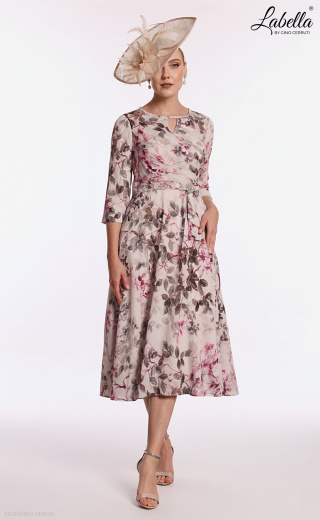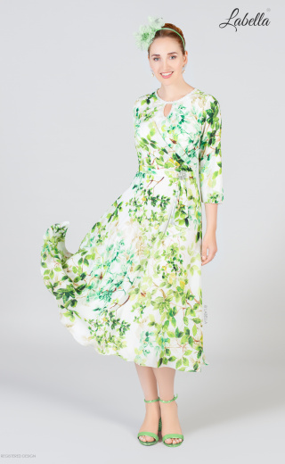 Coś wyjątkowego na lato! Ta delikatna sukienka z nadrukowanego szyfonu idealnie nadaje się na wiosenne i letnie wesela, z prostym okrągłym dekoltem i detalem w kształcie dziurki. Delikatny pasek w talii i błyszcząca broszka dodają wyjątkowego akcentu, a rękawy o długości 3/4 sprawiają, że jest doskonała na każdą okazję - od dnia do wieczoru. * Szyfon z nadrukiem * Okrągły dekolt i detal w kształcie dziurki * Plisowany gorset * Pasek w talii z błyszczącą broszką * Plisowana spódnica w kształcie litery A
