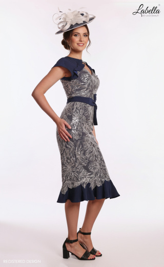 Iskrząca i elegancka, ta piękna sukienka wyróżnia się oszałamiającą, błyszczącą koronką połączoną z delikatnymi, falbaniastymi rękawami raglanowymi oraz dopasowaną spódnicą ołówkową. Dopasowany pasek podkreśla talię w urokliwą kokardę, a delikatne wycięcie z tyłu dopełnia całość. * Rękawy raglanowe * Wycięcie w kształcie klucza * Błyszcząca koronka * Pasek w talii z kokardą * Ołówkowa spódnica