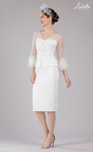 Koronkowe zdobienia i pióra? Ta sukienka jest dla kobiety, która chce zrobić wrażenie! Piękne koralikowe zdobienia na górze płynnie przechodzą w korzystny peplum oraz ołówkową spódnicę. Rękawy o długości 3/4 z ostrygowymi piórami dodają unikalnego charakteru, a efektowny, koralikowy pasek dopełnia idealny strój. * Dekolt w kształcie litery V * Rękawy 3/4 z piórami strusimi * Gorset ozdobiony koralikami * Góra peplum * Spódnica ołówkowa