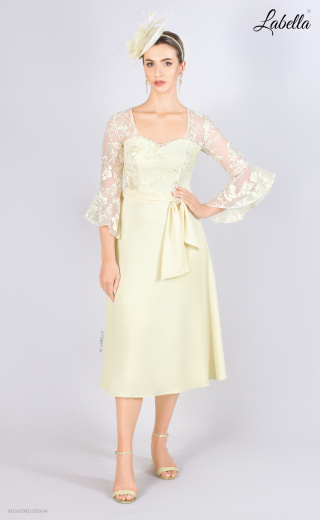 Piękno w najlepszym wydaniu, ta zachwycająca sukienka posiada delikatne koronkowe rękawy, które dodają romantycznego uroku, oraz spódnicę w kształcie litery A, idealnie podkreślającą każdą sylwetkę. Dekolt w kształcie serca ozdobiony jest misternymi koralikami, które wspaniale harmonizują z koralikami na rękawach, zwiększając elegancję sukienki. * Dekolt w kształcie serca * Koronkowe falbaniaste rękawy * Wcięcie w talii z paskiem * Spódnica w kształcie litery A