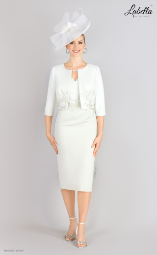Ten wspaniały zestaw sukienki i marynarki skrywa w sobie elegancję i glamour! Sukienka o długości do kolan posiada detal aplikacji, który subtelnie otacza talię oraz unikalny dekolt z wycięciem. Z bufkami i dopasowaną krótką marynarką, ten zestaw będzie idealny na letnie wesele. * Dekolt w kształcie litery V z koralikowym detalem * Dwukolorowy * Kwiatowa aplikacja * Krótkie rękawy * Długość do kolan * Dopasowana sylwetka * Dopasowana marynarka