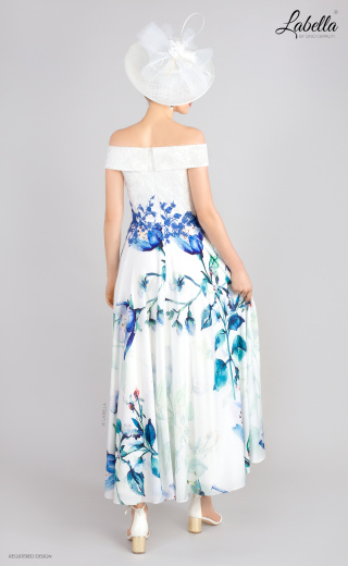 Ta oszałamiająca sukienka w kształcie litery A przyciągnie wzrok, gdy wejdziesz do każdego pomieszczenia! Model z odkrytymi ramionami pięknie podkreśla sylwetkę, ozdobiony delikatną koronką oraz odważną, drukowaną spódnicą, która sięga do kostek. Ten ultra-kobiecy styl jest idealny dla energicznej młodej kobiety lub eleganckiej matki panny młodej. * Odkryte ramiona * Koronkowy gorset * Drukowana spódnica * W kształcie litery A * Długość do kostek