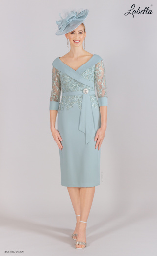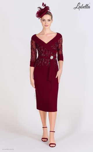 Ta oszałamiająca sukienka do kolan to uosobienie wyrafinowania i glamour, leży jak ulał! Posiada misternie wykonane aplikacje oraz korzystny dekolt, a jej urok dopełnia delikatny pas ozdobiony broszką. * Dekolt w serek * Rękaw 3/4 * Aplikowane bodice * Szczegół pasa z broszką * Długość do kolan * Slim fit