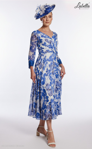 Odkryj wdzięk naszej wyjątkowej sukienki z dekoltem w serek, wykonanej z haftowanej szifonu, zaprojektowanej, aby wzbogacić Twoją garderobę. Ta sukienka o długości do herbaty ma rękawy 3/4 ozdobione delikatną koronką, co dodaje jej elegancji. Marszczony gorset pięknie kształtuje sylwetkę, podczas gdy plisowana spódnica w kształcie litery A lekko opływa przy każdym kroku. * Dekolt w serek * Marszczony gorset * Rękawy 3/4 z koronkowym wykończeniem * Plisowana spódnica w kształcie litery A * Długość do herbaty Dopasowany kapelusz dostępny do zakupu