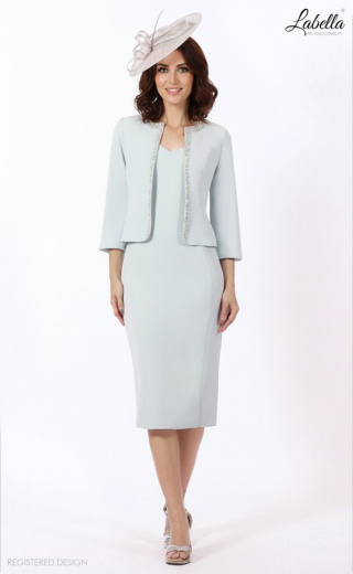 Ta elegancka sukienka ma wyszczuplający dekolt w kształcie litery V i krótkie rękawy, idealna na każdą specjalną okazję. Sukienka o długości do kolan jest uzupełniona dopasowaną marynarką ozdobioną koralikowym wykończeniem, co dodaje elegancji i stylu Twojemu wyglądowi. * Dekolt w kształcie litery V * Krótkie rękawy * Długość do kolan * Dopasowana marynarka z koralikowym wykończeniem