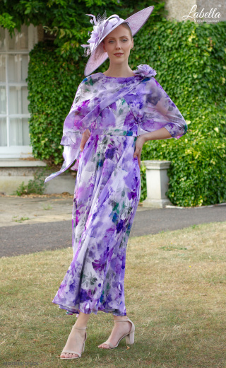 Sukienka Celestia emanuje elegancją dzięki urzekającym wzorom w kolorze liliowym, uszyta z luksusowego, ciężkiego szyfonu, który opada z wdziękiem do długości herbaty. Delikatny kwiatowy wzór dodaje odrobiny romantyzmu, a zwiewne, półprzezroczyste rękawy łagodnie otaczają ramiona. Jej eteryczny charakter i elegancka sylwetka zapewnią, że będziesz wyglądać pięknie na każdej okazji jako matka panny młodej lub matka pana młodego. Dostępna w kolorze liliowym.