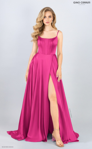 Ta piękna satynowa sukienka wyróżnia się vintage’owym stylem, w tym gorsetowym topem oraz zawiązywanym wycięciem na plecach, który podkreśla talię. Cienkie ramiączka i rozcięcie na nogę dodają modnego akcentu, a elegancki tren pięknie opada na podłogę. Wszechstronna, prosta i szykowna! • Okrągły dekolt • Gorsetowa góra • Rozcięcie na nogę • Długość do ziemi z trenem • Zawiązywane plecy