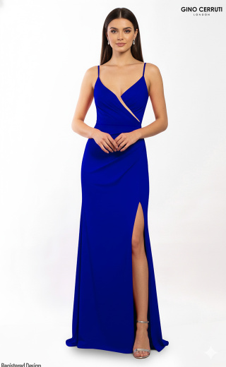 Wejdź w świat elegancji dzięki tej olśniewającej sukni z głębokim dekoltem w kształcie litery V oraz iluzoryjnym wycięciem, które nadaje nowoczesny akcent. Zgromadzony w pasie materiał pięknie podkreśla Twoją sylwetkę, a rozcięcie nogawki oraz długi tren tworzą dramatyczny efekt. Idealna, aby zrobić niezatarte wrażenie na każdej formalnej imprezie! * Dekolt w kształcie litery V * Iluzoryjne wycięcie * Zgromadzony w pasie * Rozcięcie nogi * Długi tren