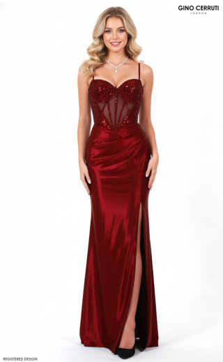 Ta urzekająca suknia posiada elegancki dekolt w kształcie litery V ozdobiony błyszczącymi detalami na biuście, co zapewnia oszałamiający efekt wizualny. Przezroczysta gorsetowa góra zapewnia korzystne dopasowanie, podczas gdy elegancki rozporek dodaje odrobinę uwodzicielskiego uroku. Wykończona sznurowanym tyłem dla dostosowanego komfortu, ta sukienka jest idealna do zaprezentowania się na każdej formalnej okazji. * Dekolt w V * Błyszczący biust * Gorsetowa góra * Podkreślona talia * Rozporek * Sznurowany tył