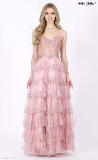 Ta oszałamiająca sukienka na bal charakteryzuje się korzystnym dekoltem w serek oraz pięknie haftowanym gorsetem, który dodaje elegancji i blasku. Zdobiona talia podkreśla sylwetkę, a warstwowa, błyszcząca spódnica tworzy dramatyczny efekt. Wykończona sznurówką z tyłu, ta suknia jest idealna do zrobienia wrażenia na każdej specjalnej okazji! * Dekolt w serek * Haftowany gorset * Zdobiona talia * Warstwowa, błyszcząca spódnica * Sznurówka z tyłu