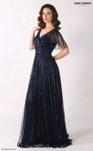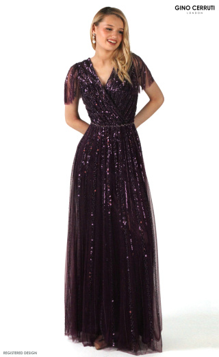 Suknia wieczorowa Caia emanuje elegancją dzięki luksusowemu materiałowi zdobionemu koralikami, który opada w sposób elegancki do samej podłogi. Dostępna w bogatym odcieniu granatowym oraz głębokim śliwkowym, ta sukienka ma delikatne frędzle przy rękawach, dodające vintage'owego uroku. Zachwycający blask koralików tworzy hipnotyzujący efekt, zapewniając, że wyróżnisz się na każdym wydarzeniu. Dostępna w kolorach granatowym i śliwkowym.