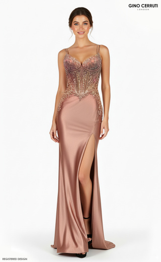 Sukienka balowa Freya to oszałamiające połączenie elegancji i uroku, wykonana z luksusowego satynu prążkowanego w pięknym odcieniu brązu. Jej dopasowany krój delikatnie podkreśla krągłości, a misternie zdobione detale dodają odrobiny glamouru w okolicy dekoltu. Sukienka posiada odważne rozcięcie do ud, które w piękny sposób eksponuje nogi, co czyni ją idealną na niezapomnianą noc. Dostępna w kolorze brązowym.