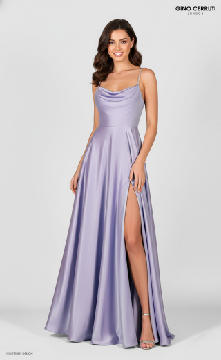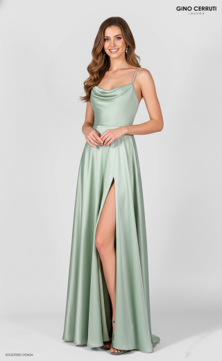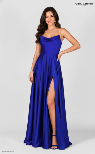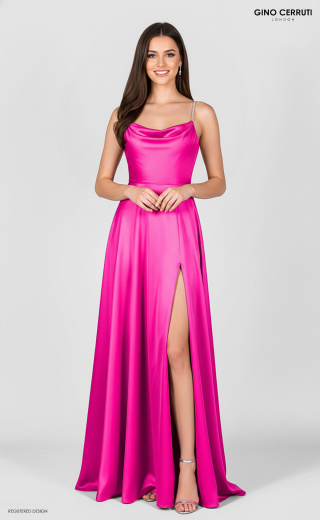 Uwielbiamy tę sukienkę! Miękka satynowa tkanina prezentuje się zachwycająco w każdym kolorze, z wysmuklającym rozcięciem w talii oraz pięknym dekoltem typu halter. Podwójne przezroczyste ramiączka wysadzane cyrkoniami krzyżują się z tyłu, dodając odrobinę elegancji i blasku. * Dekolt woda * Ramiączka z koralikami * Plisowana spódnica w kształcie litery A * Rozcięcie na nodze