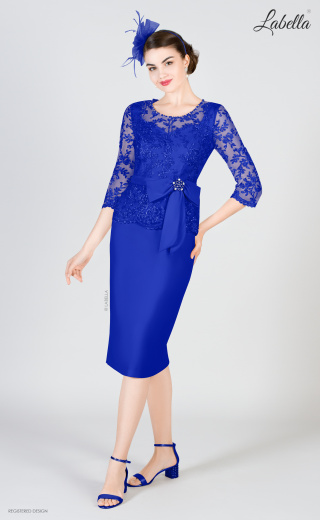 Kokarda to nieodzowny element świątecznego stroju, a gdy jest ozdobiona koralikami, staje się naprawdę przyciągająca wzrok! Ta dopasowana sukienka jest pięknie podkreślona koronkowym topem z delikatnymi falbaniastymi brzegami i dekoltem ozdobionym koralikami. * Iluzjonistyczny okrągły dekolt * Sylwetka w kształcie serca * Pasek z koralikową kokardą * Koronkowe rękawy * Długość do kolan