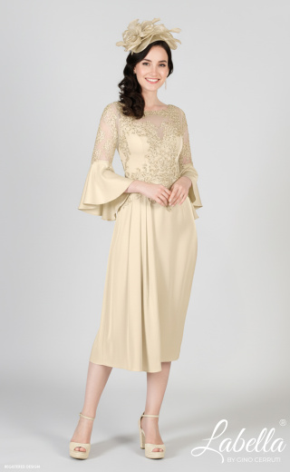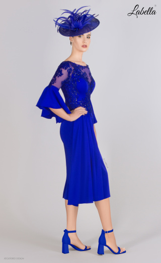 Ta piękna sukienka koronkowa wyróżnia się iluzoryjnej koronką z błyszczącymi akcentami oraz zwiewnym materiałem. Zaprojektowana z myślą o wymagającej kobiecie, detal boczny z tkaniny doskonale uzupełnia rozkloszowane rękawy, tworząc elegancką sylwetkę. * Okrągły koronkowy dekolt * Rękawy 3/4 w kształcie dzwonu * Boczny drap * Dopasowana sylwetka